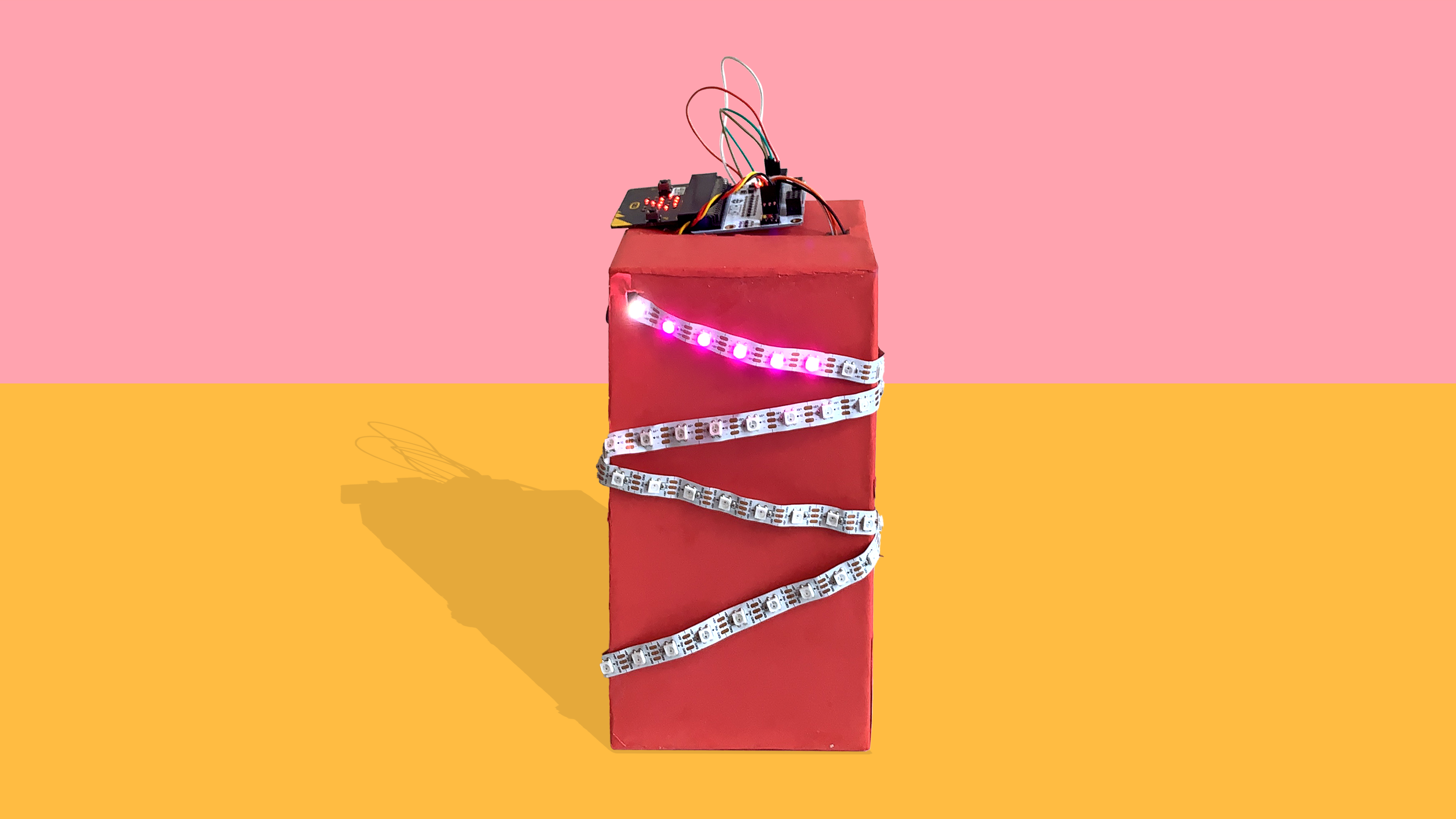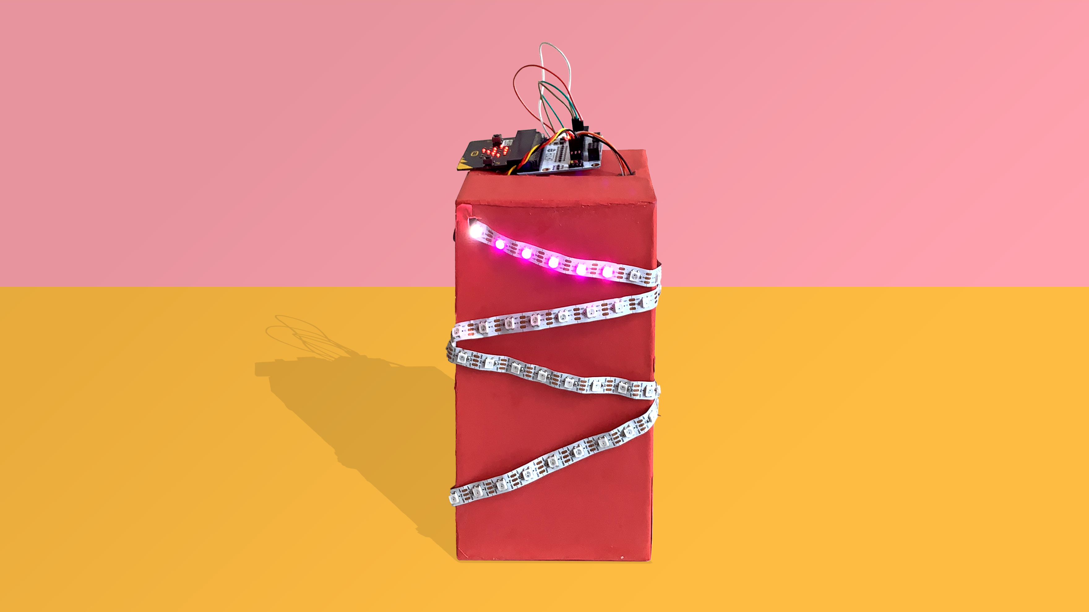 (a) Tape the Micro:bit down to the top of the tissue box to secure.