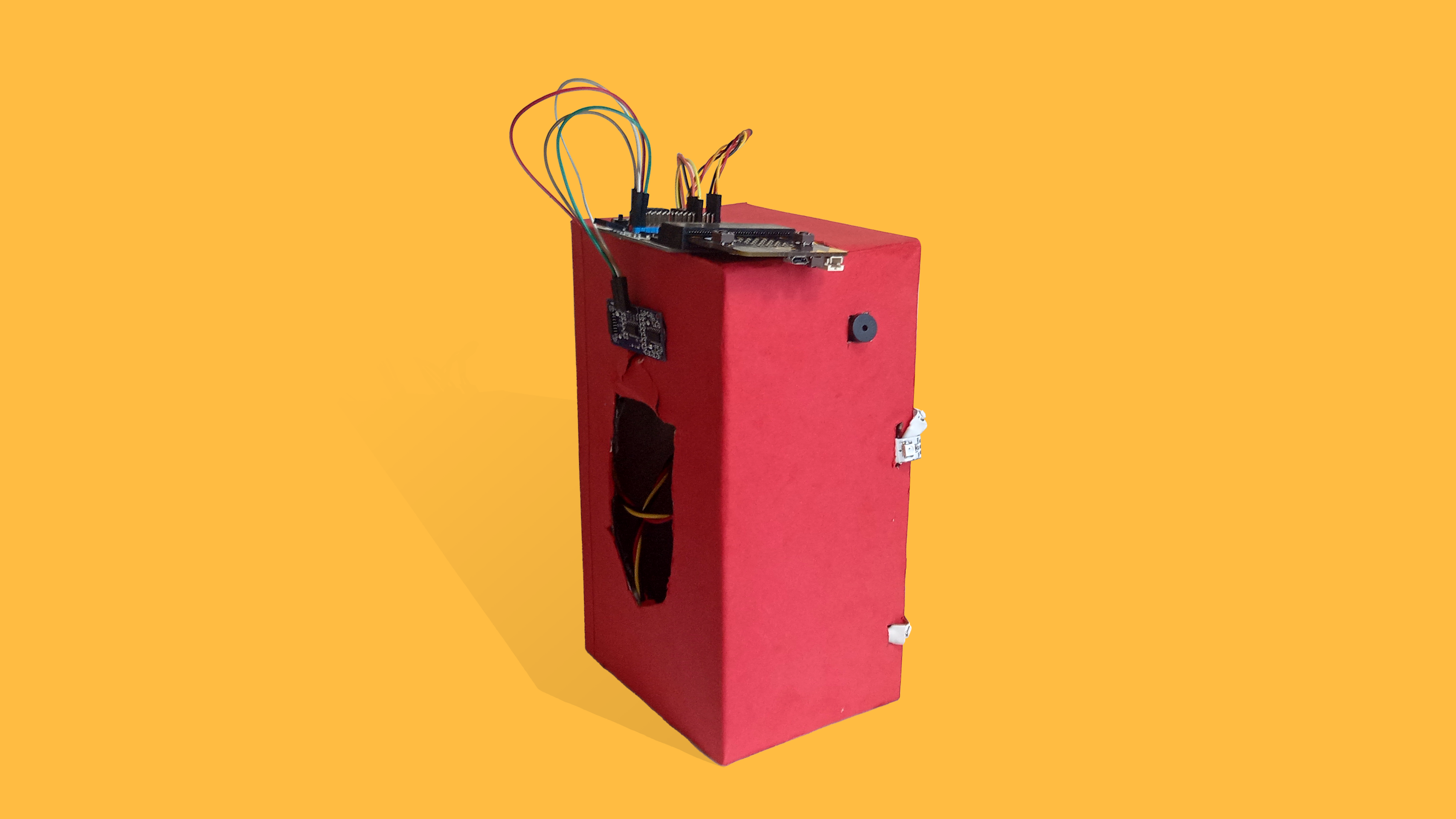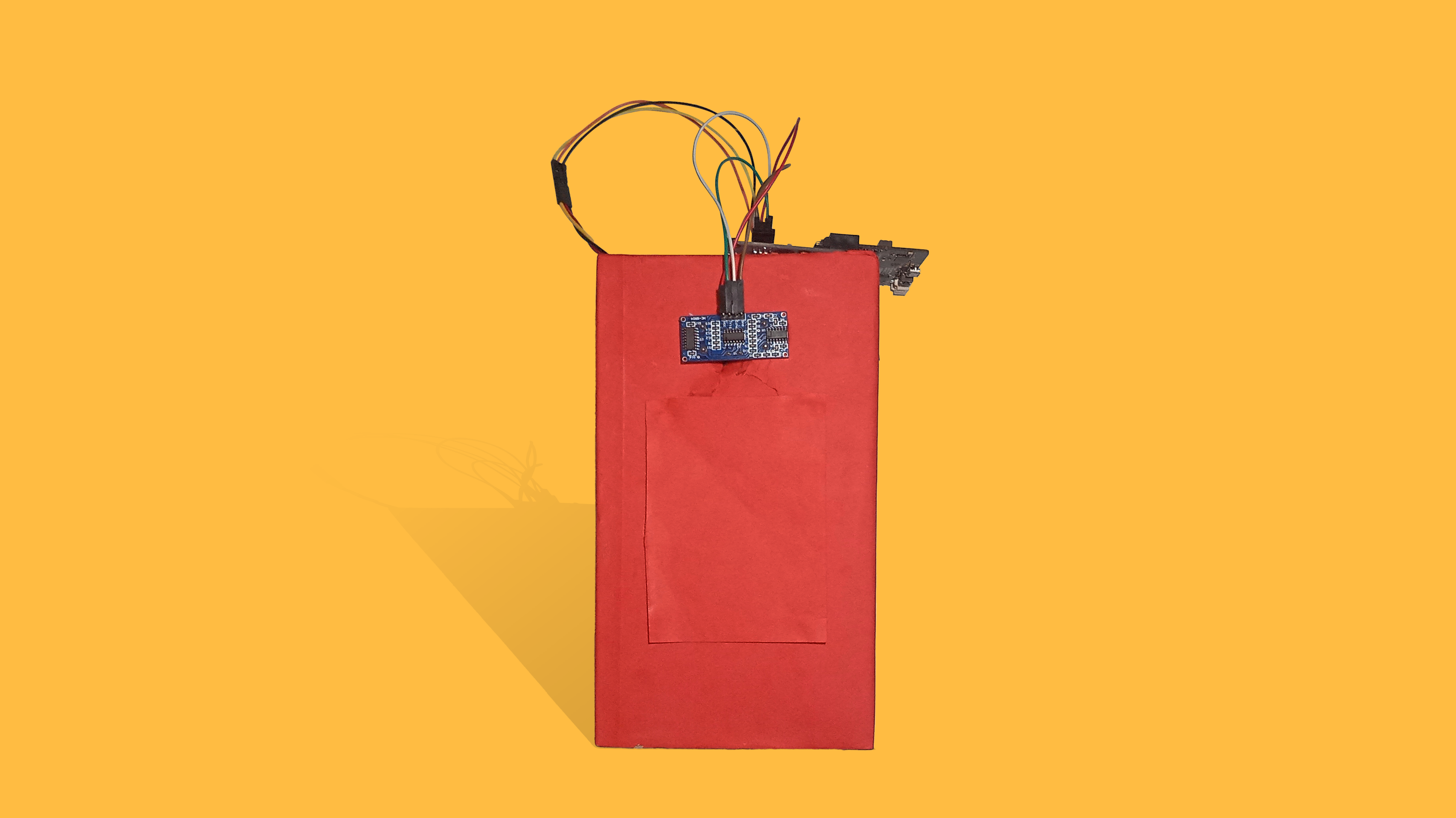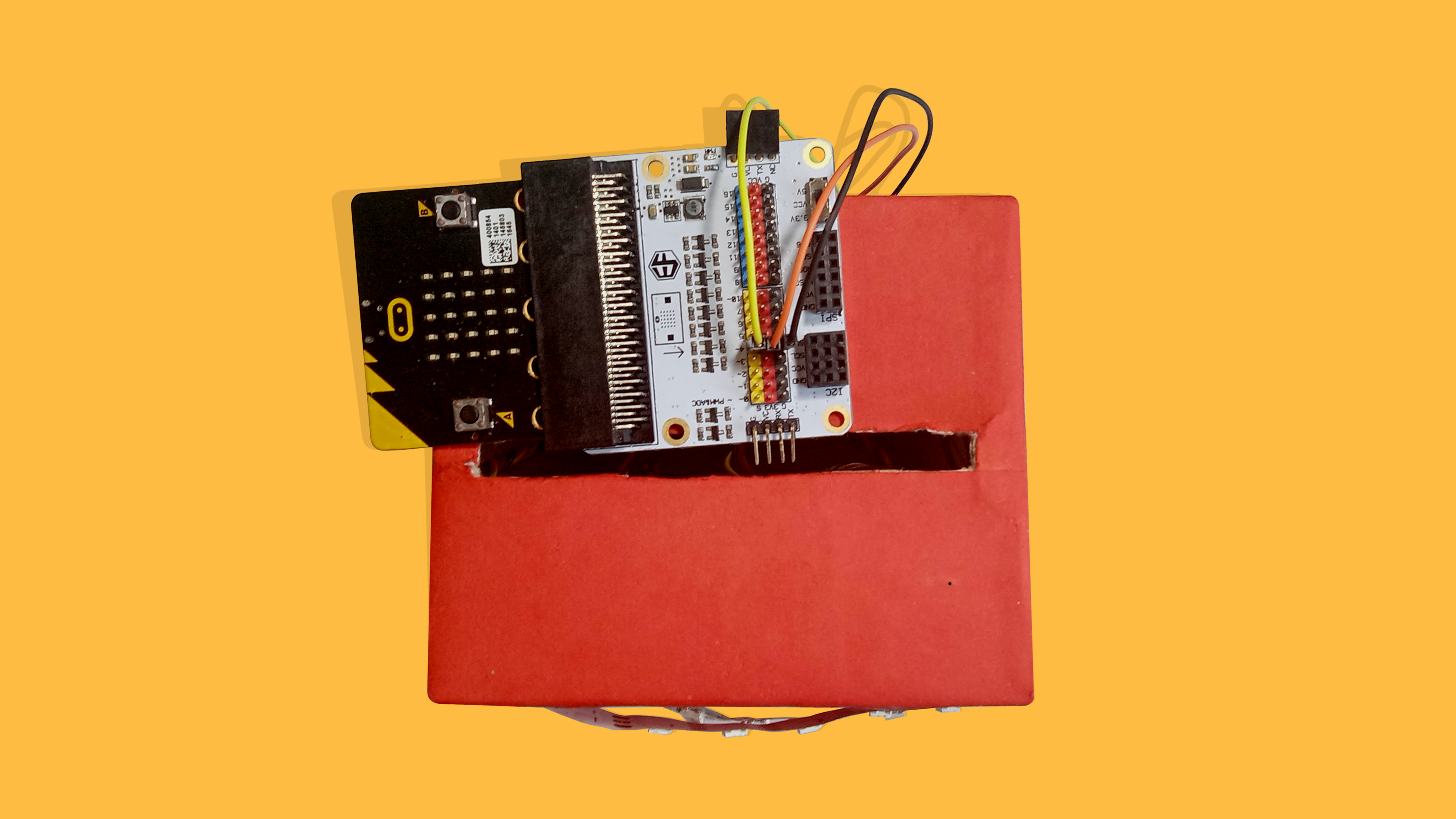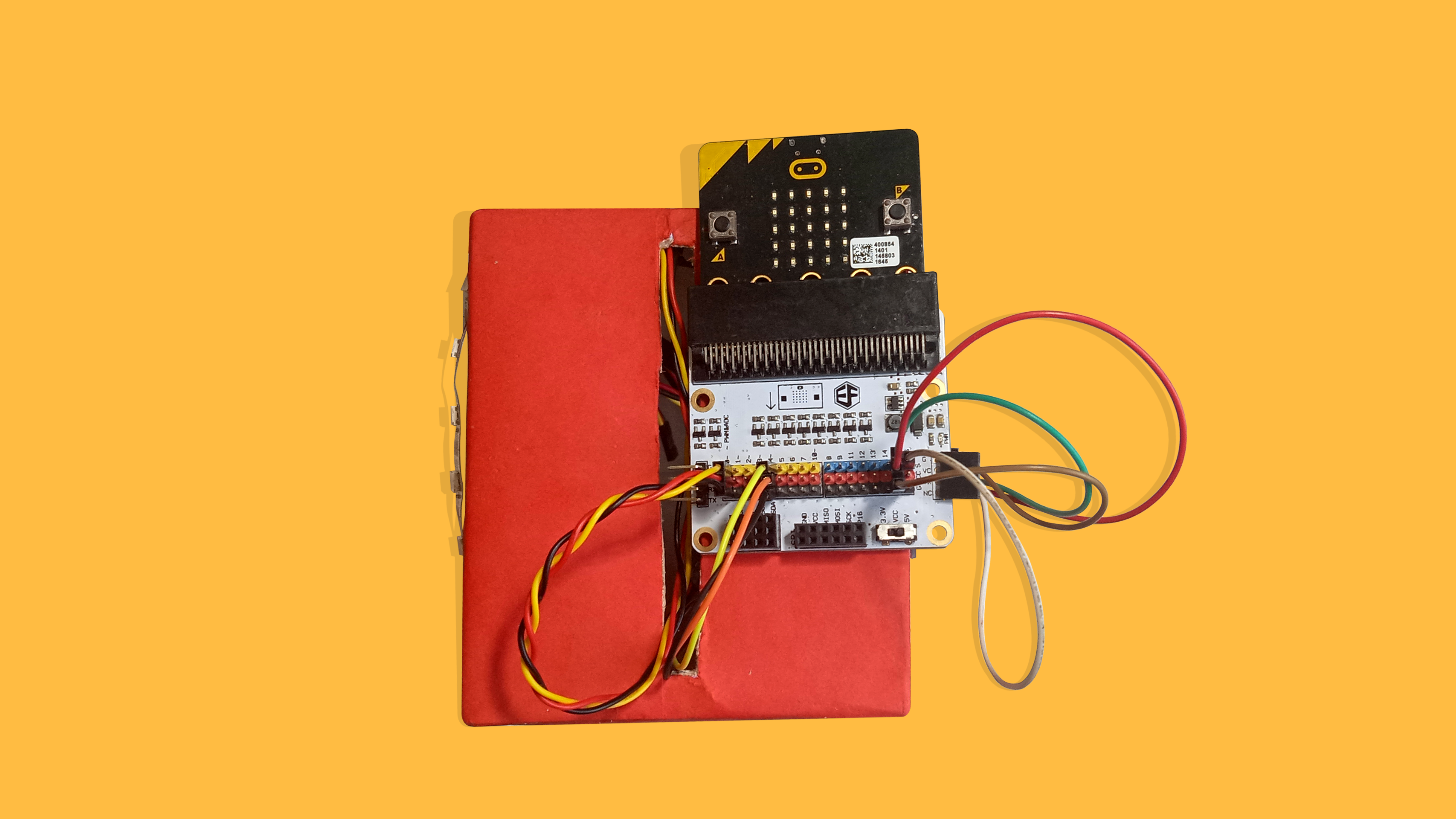 (a) Slot the micro:bit into the Tinkercademy Breakout Board. Place them on top of the box, above the rectangular opening for the ang baos.