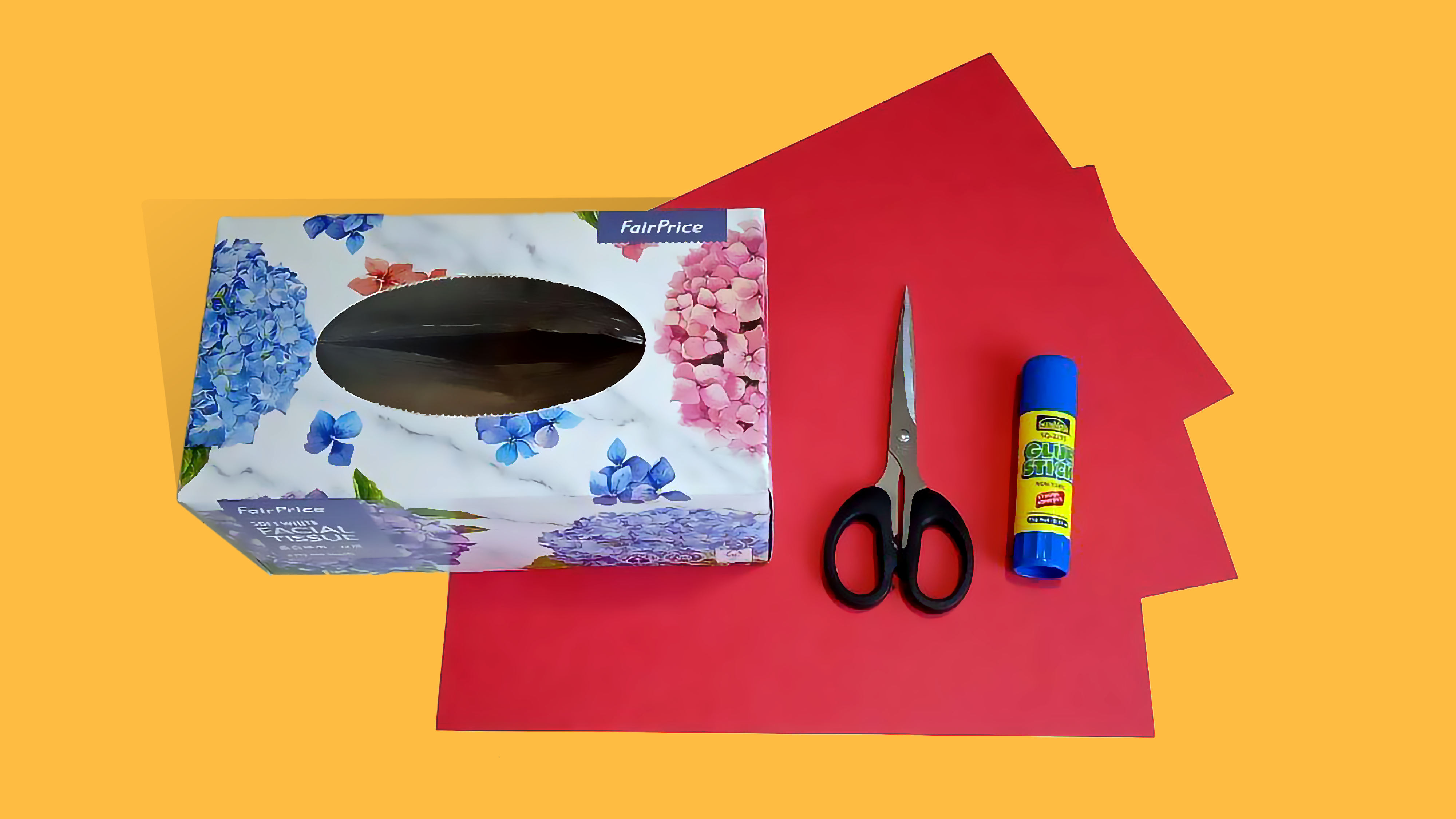 (b) Use glue to wrap all its sides up with red coloured paper.