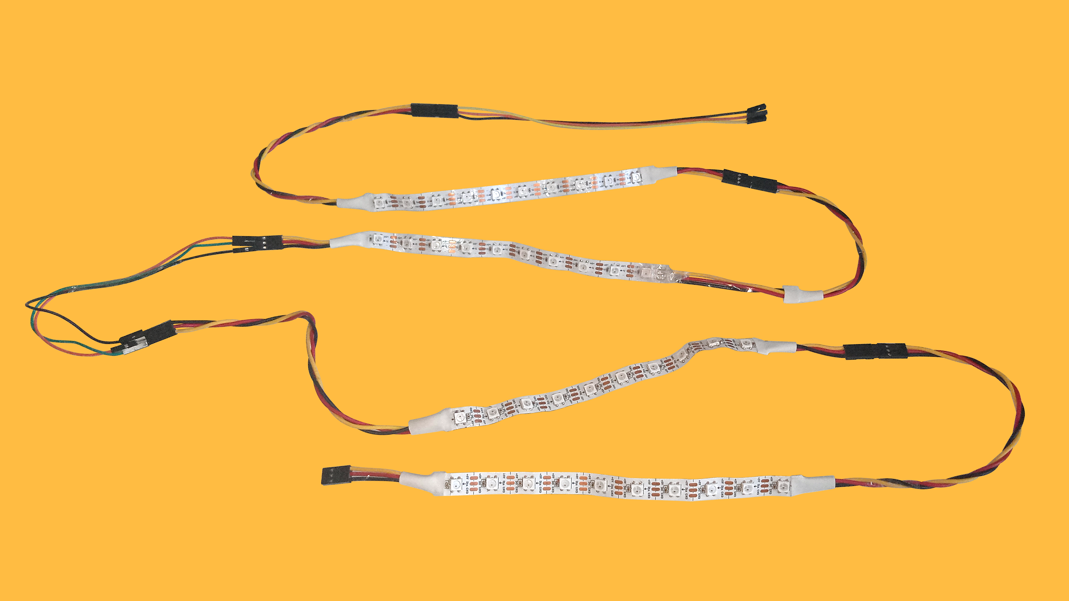 (d) Here, we used 2 F-F jumper wires - 1 to connect the first Neopixel LED strip to the breakout board, and 1 to connect two LED strips with male ends together.