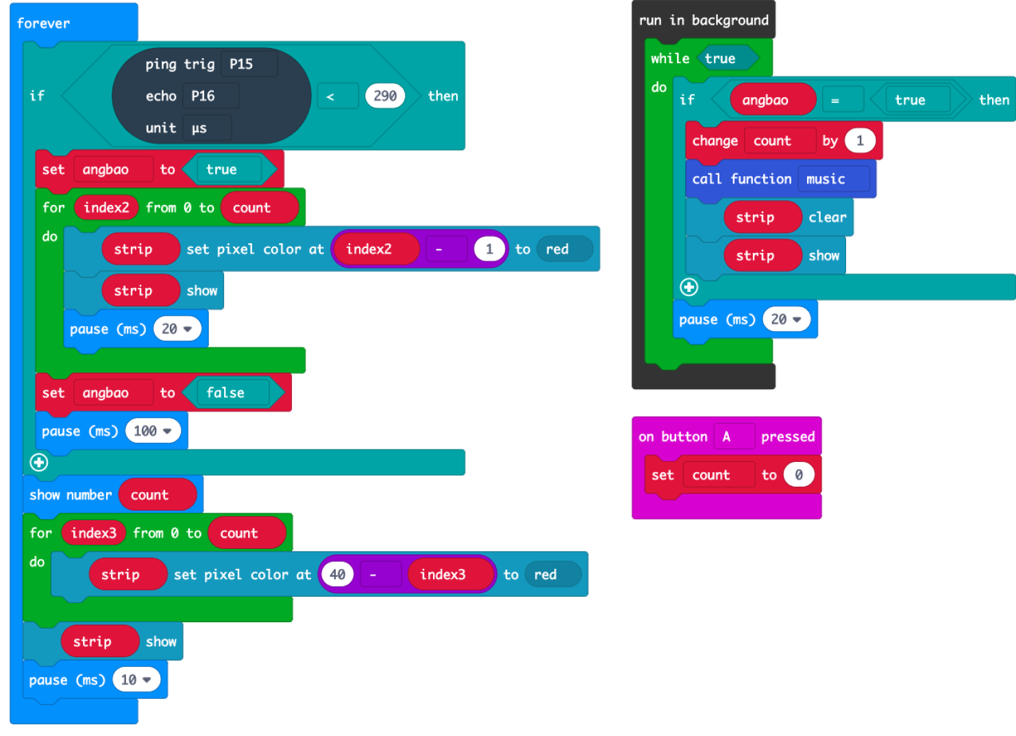 (d) The programme keeps count of the number of Ang Baos received, and shows the tally on both the Micro:bit LED display and the Neopixel LED Strip.