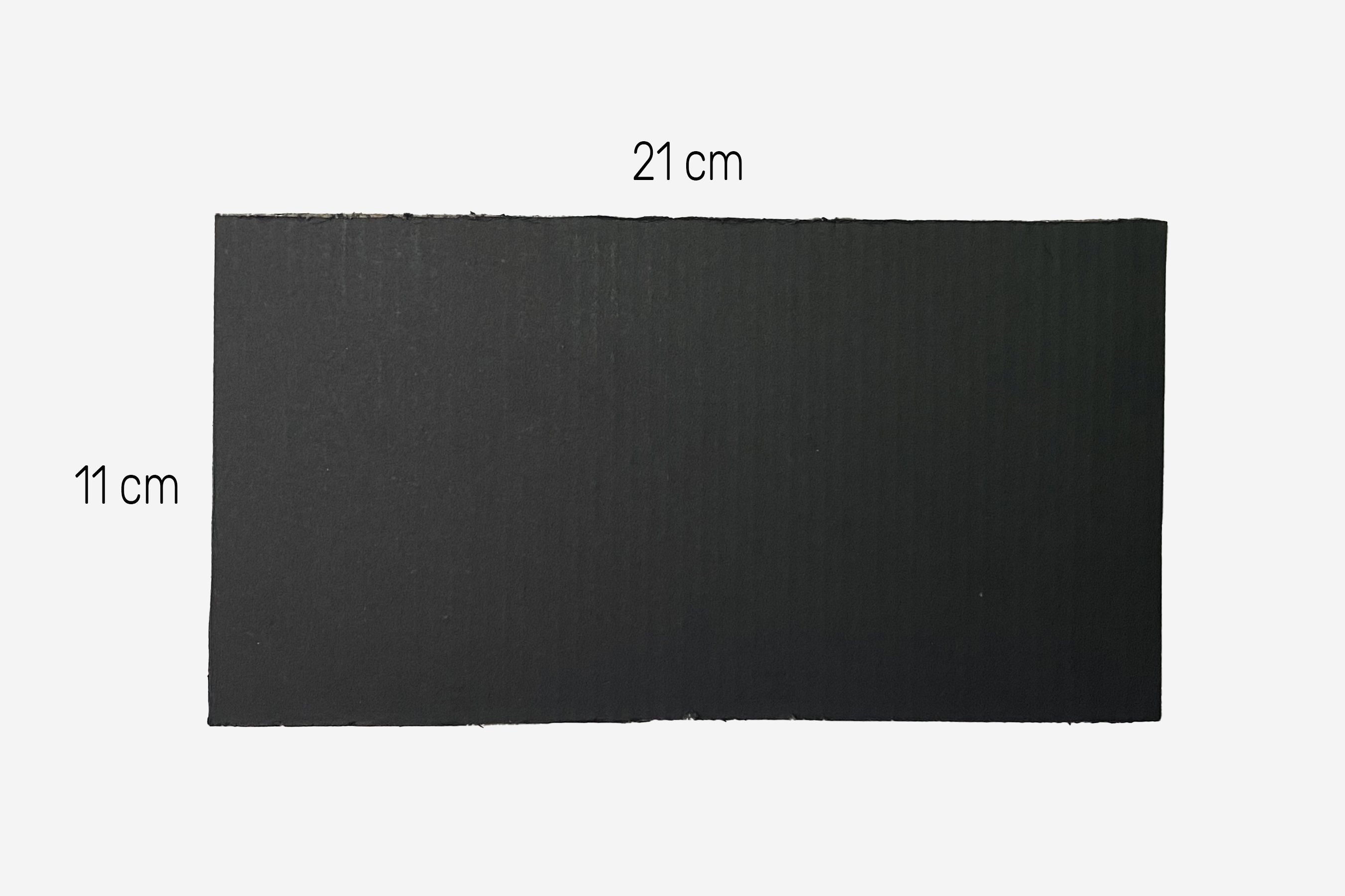 To start, we cut out out 3 pieces of 21cm by 11cm cardboard. These will form the base and sides of the car.