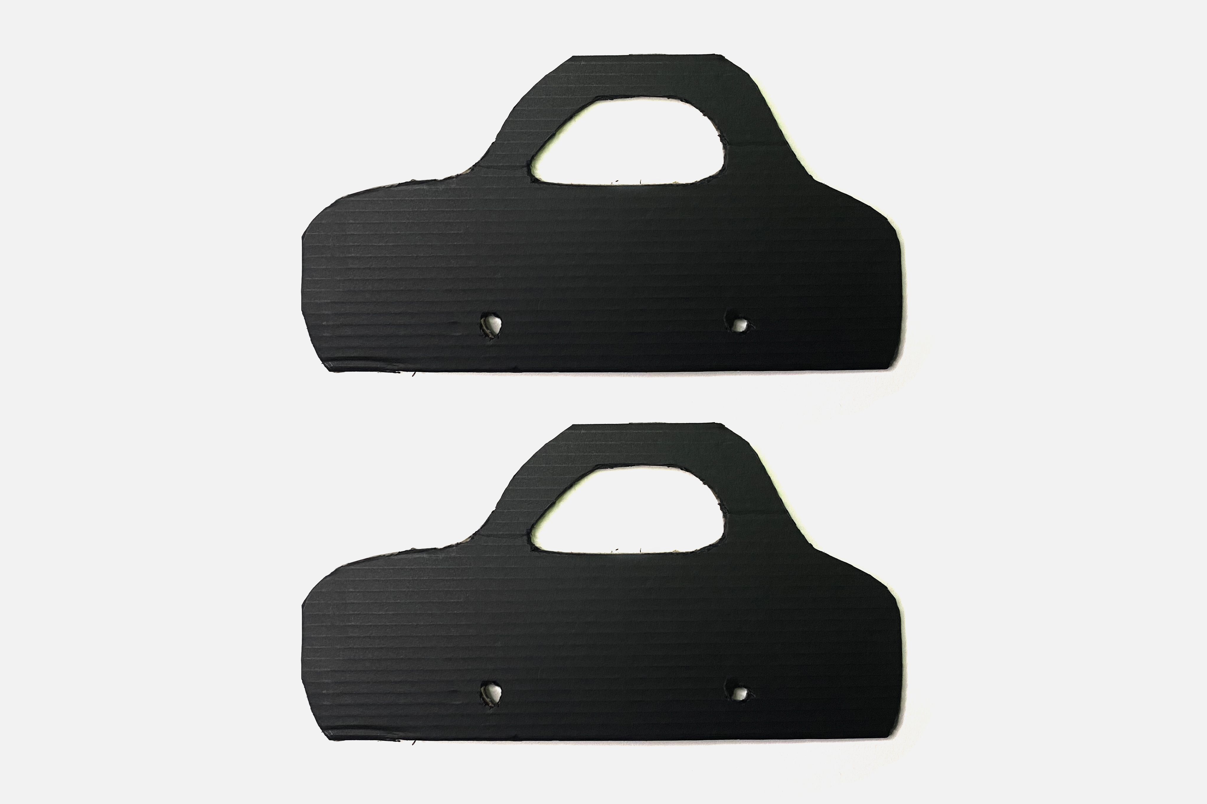 Draw an outline of a car on the two pieces of cardboard, and cut them out, making sure they’re identical (or mirror images), so they can form opposite sides of the car.