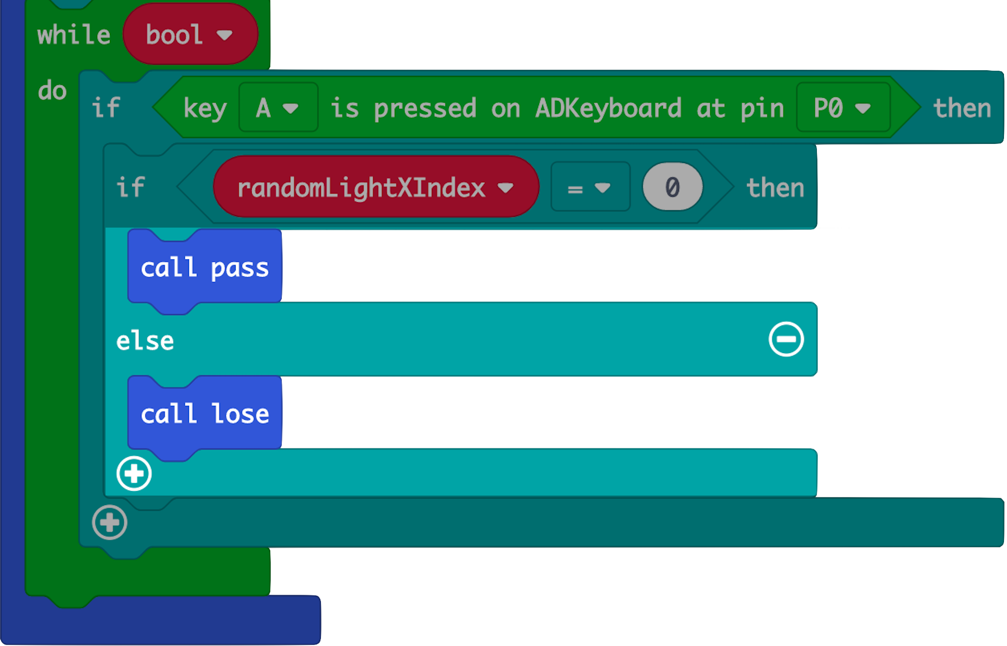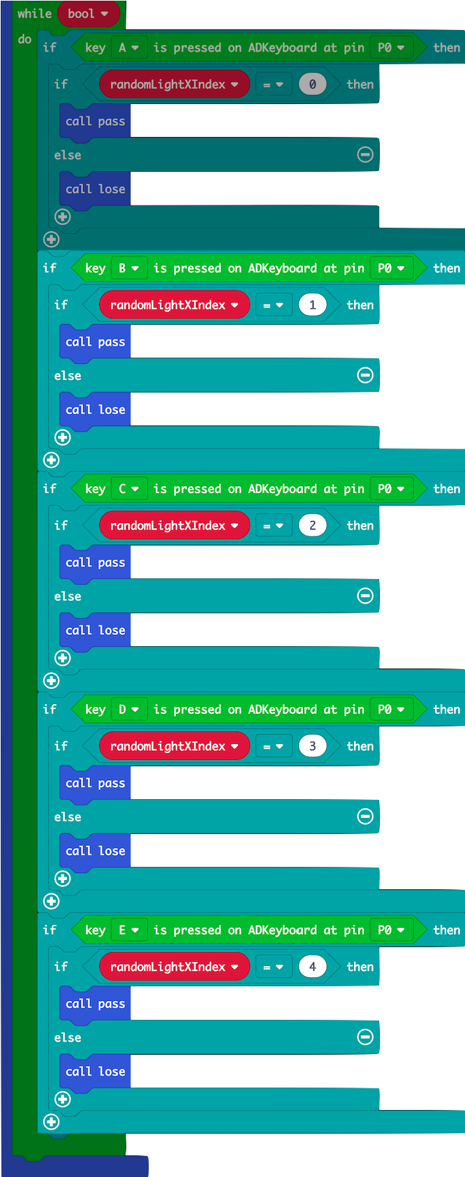 (b) Within each ADKeypad press 'if' statement, check if the button corresponds to the column of the lit up LED.