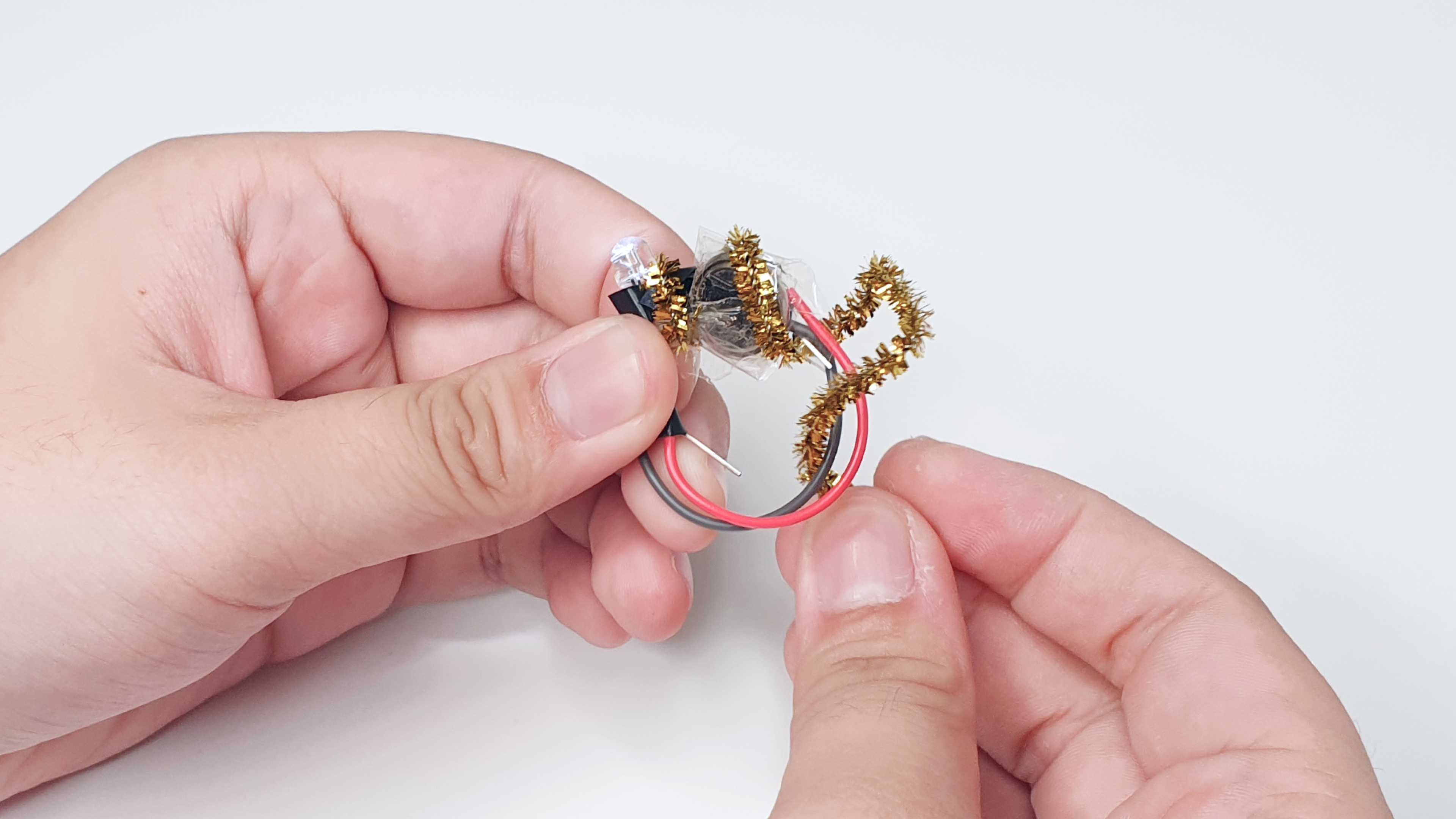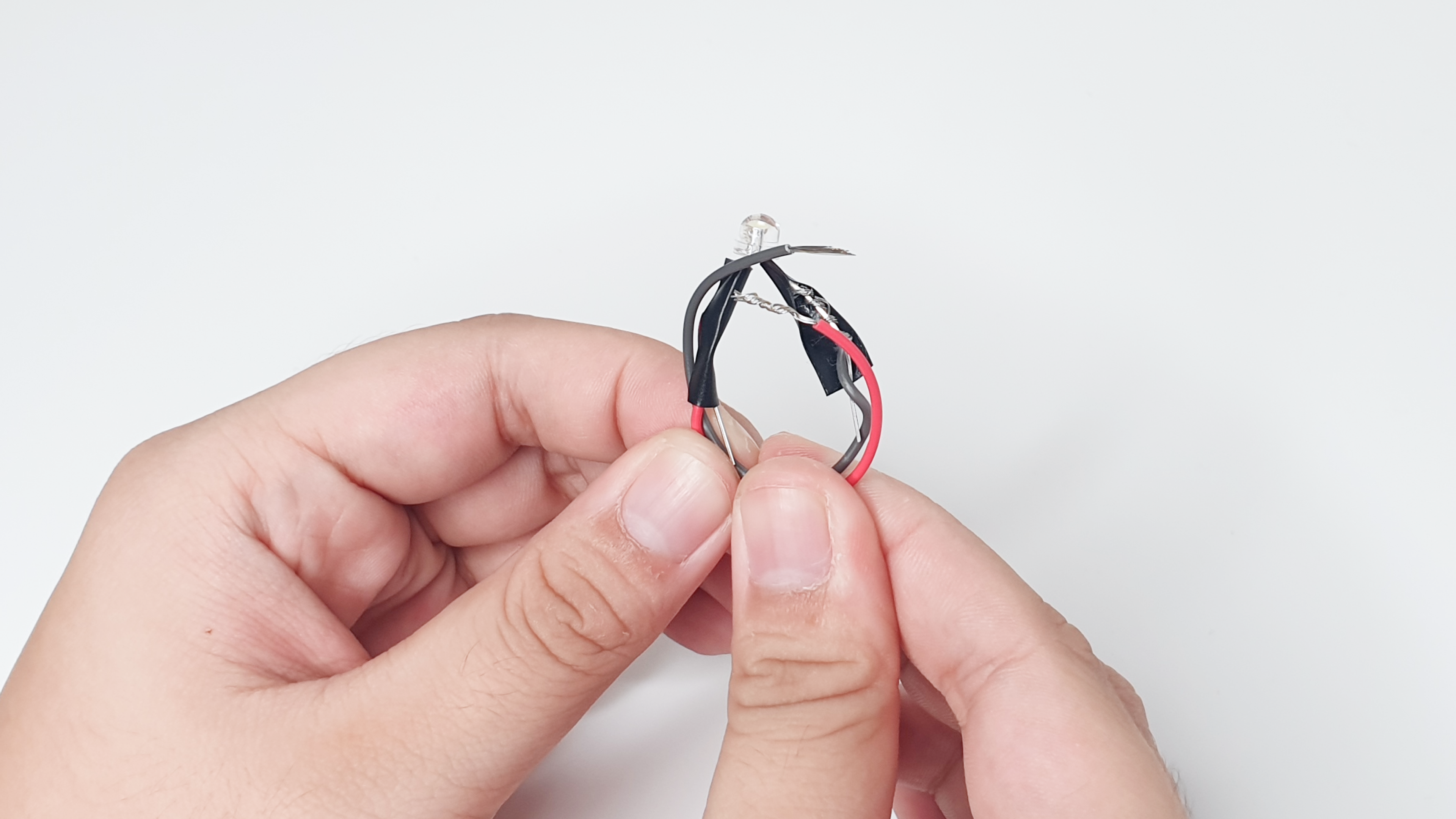 Twist the wires around the legs of the LED