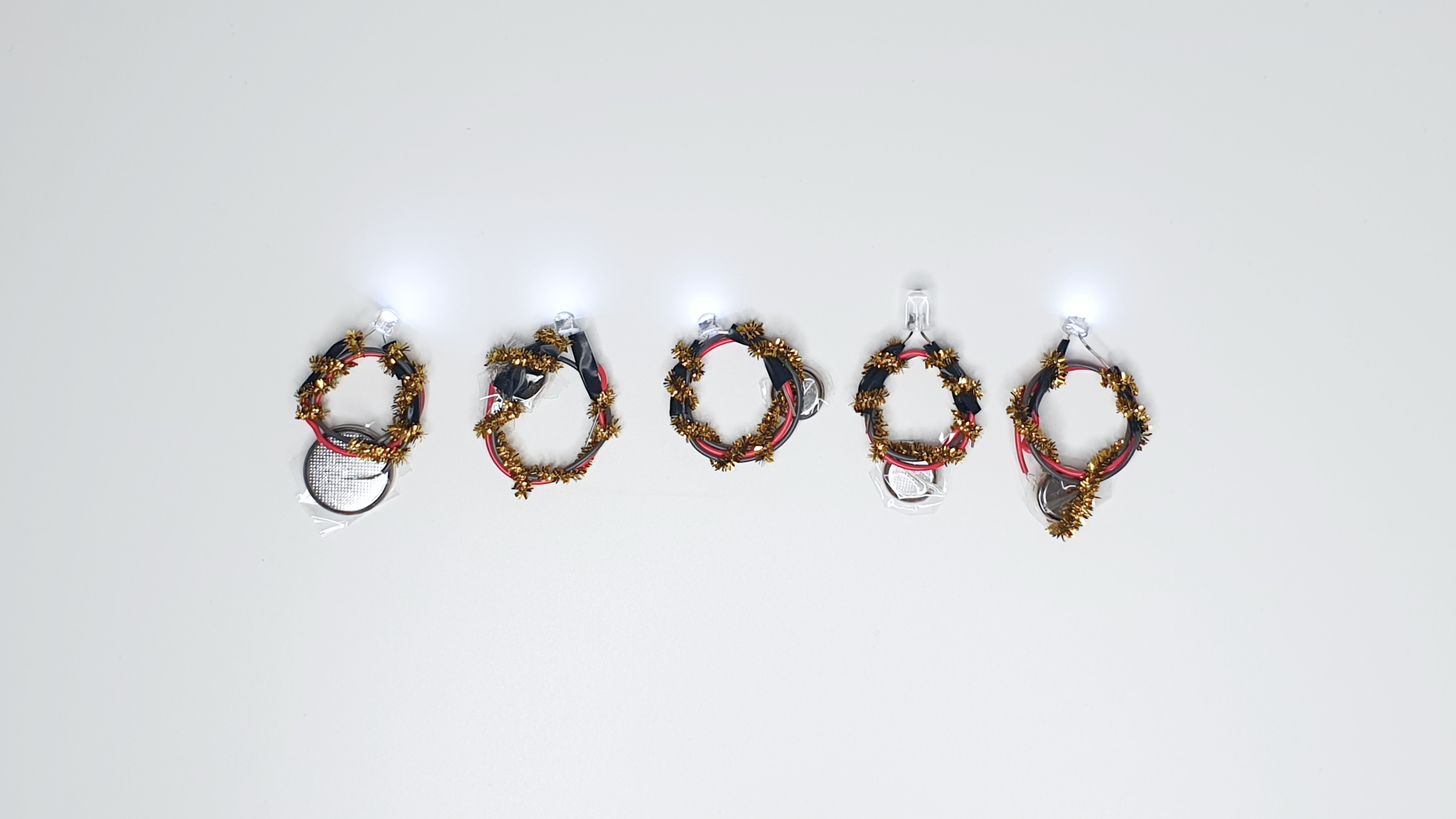 Coil the wires to form a ring shape, ensuring that the free ends of both wires are either at the side or bottom of the ring.