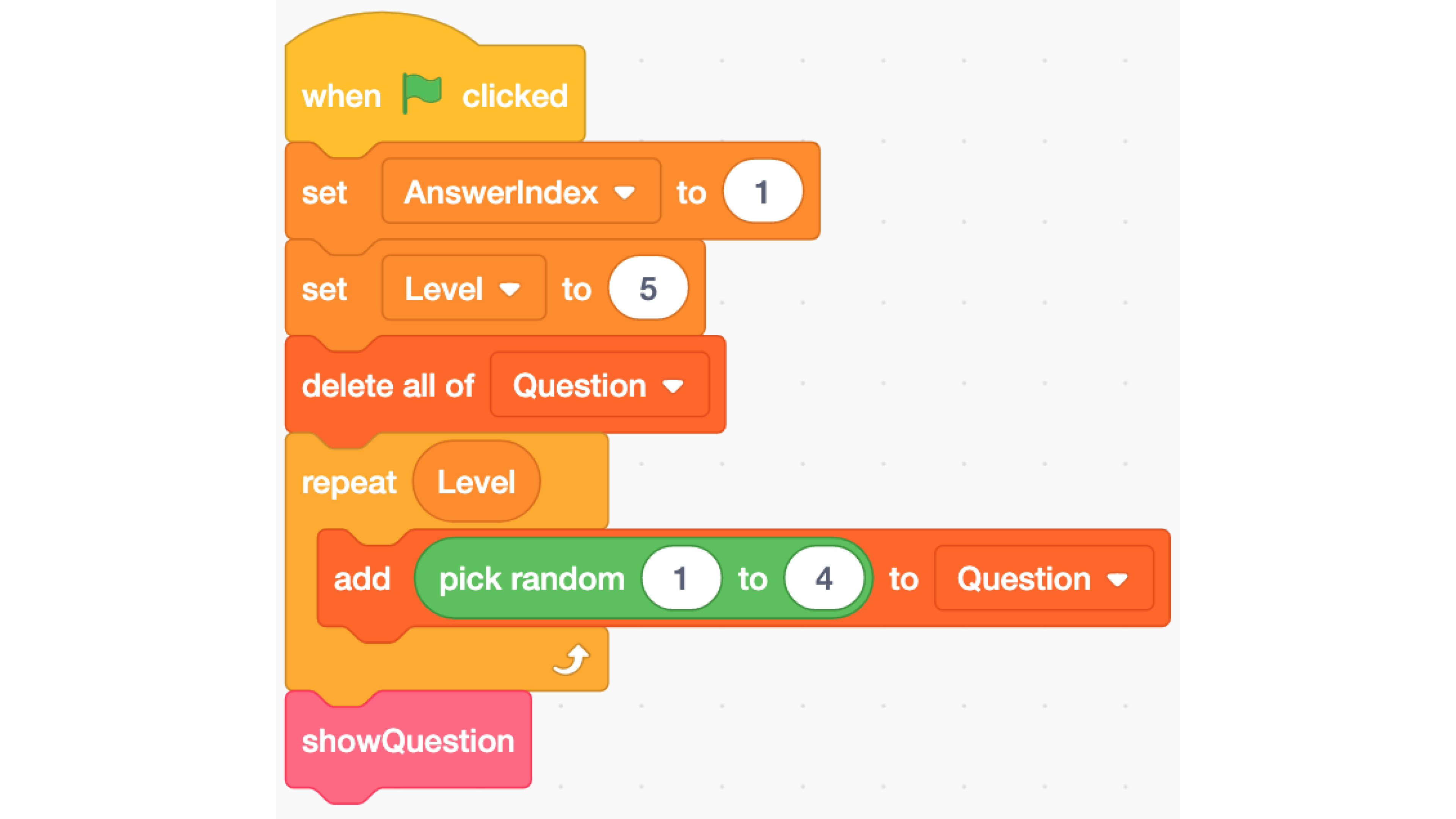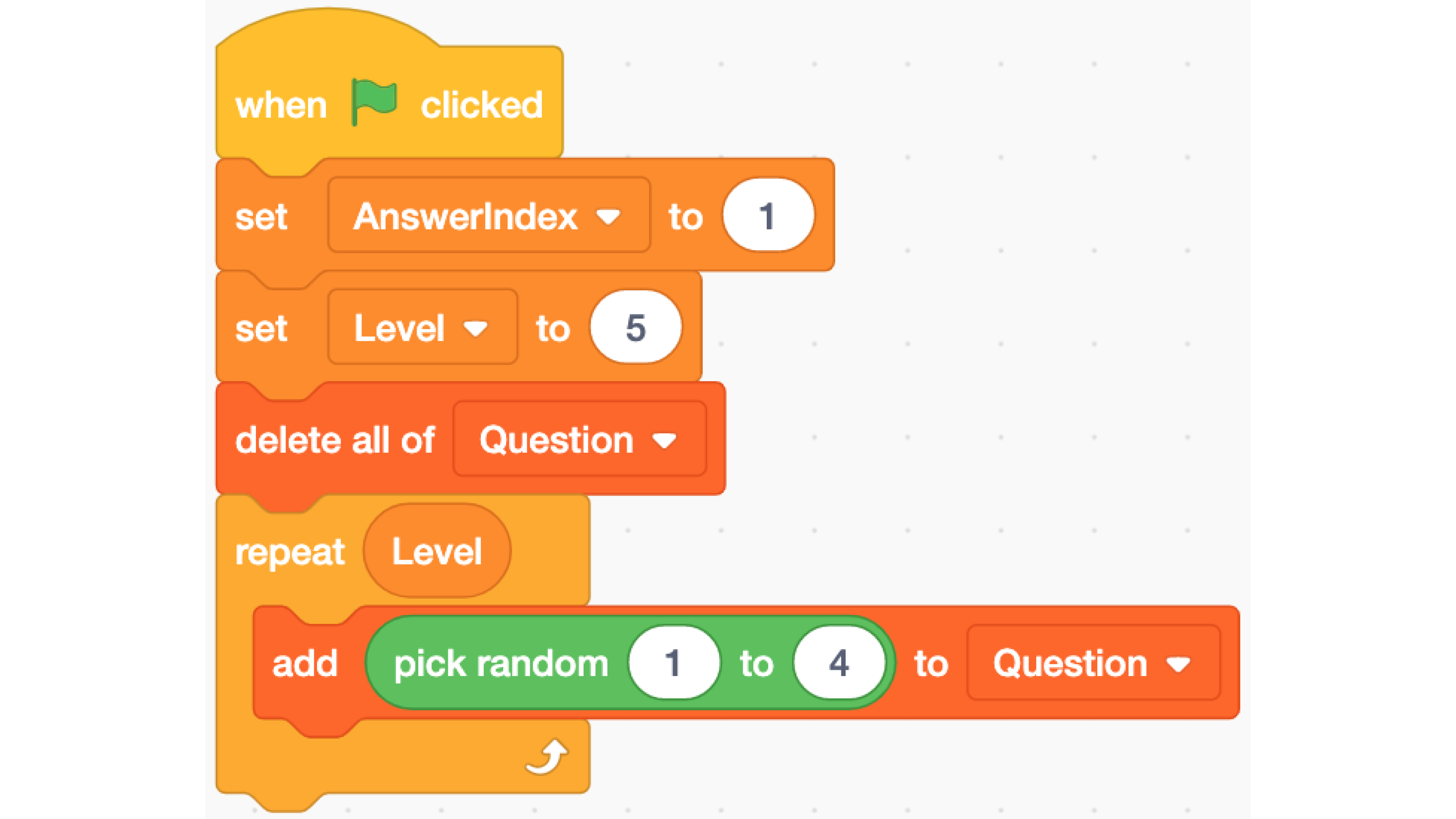 The variable “AnswerIndex” keeps track of the number of correct answers, while “Level” refers to the number of rounds per game.