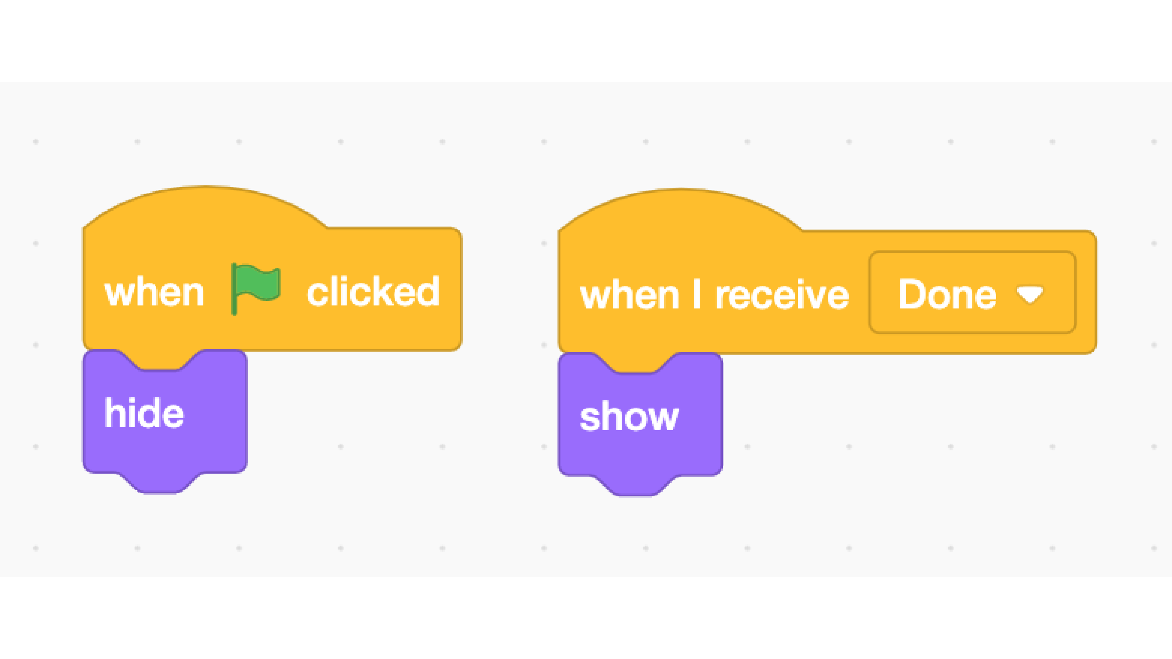 Add the following code to the message sprite so that it is hidden until the game is done.