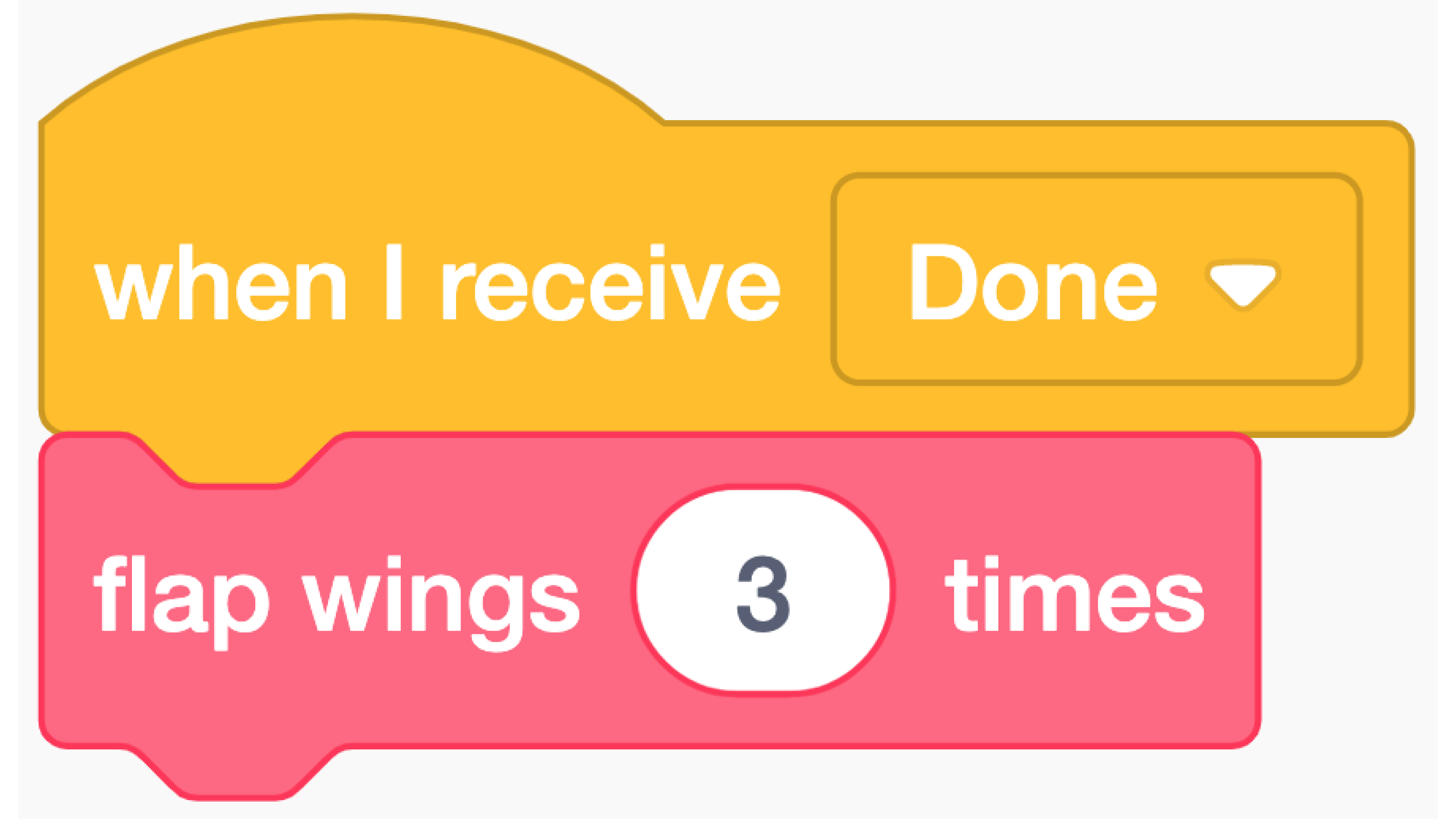 We can hence define a block “flap wings”, which takes a number “num”, and gets the toucan to flap its wings “num” times.