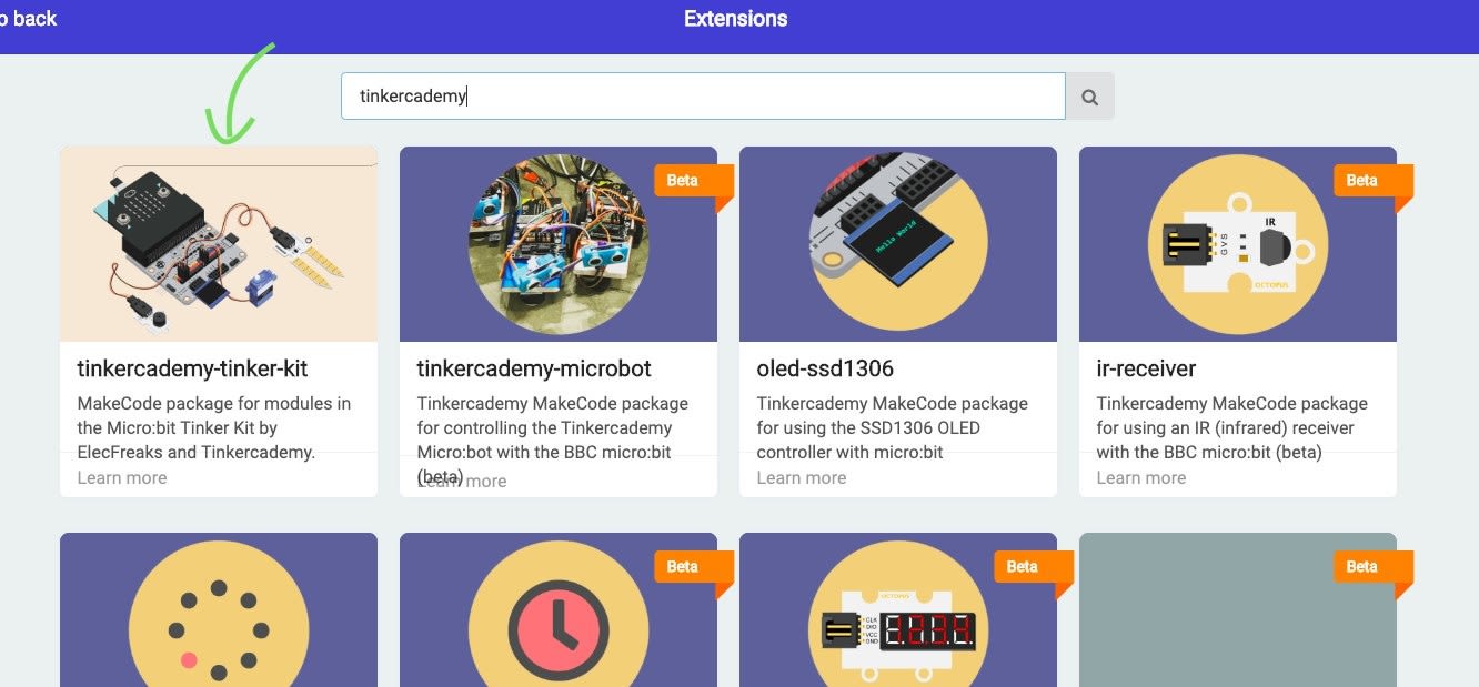 Step 2 - Create a MakeCode project and add the Tinkercademy extension