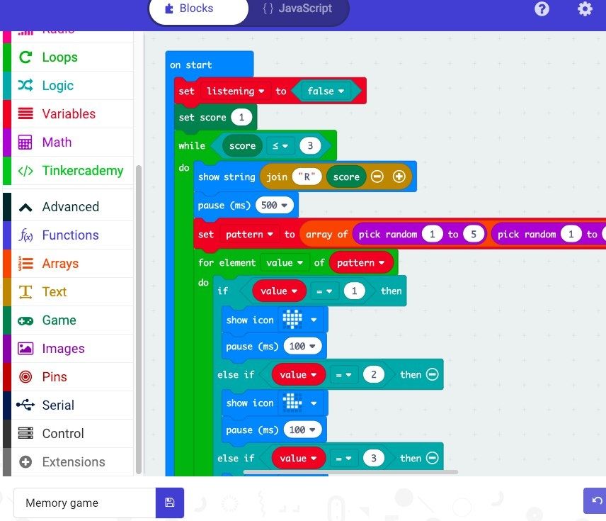 - Select JavaScript mode in MakeCode.