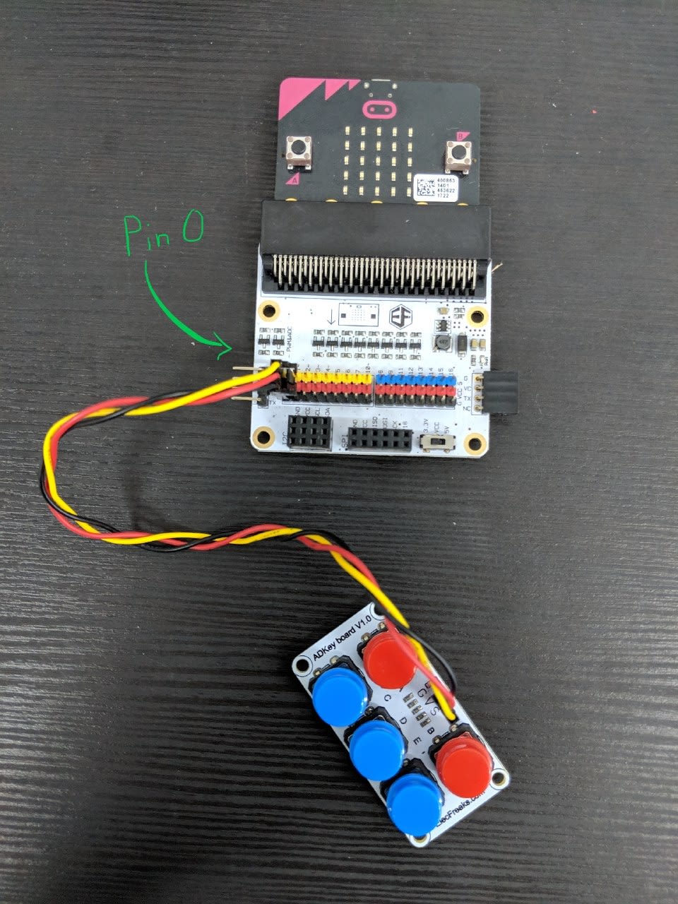 - Connect the ADKeypad to the pin 0 of the breakout board as shown (G to G, V to VCC, S to S).