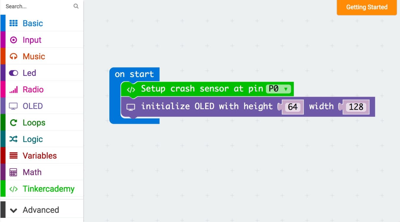 Follow the code in the picture. The code is to initialize the Crash Sensor and OLED for use later.