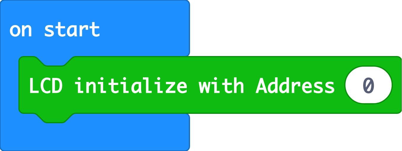 From the i2c_LCD1602 drawer, drag an 'LCD initialize...' block to initialise the LCD display