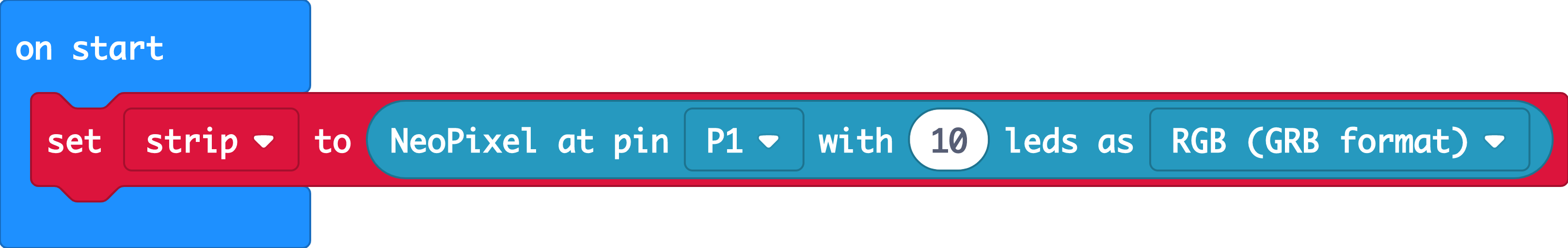 (a) In the Neopixel drawer, drag a 'set strop to...' block into on start