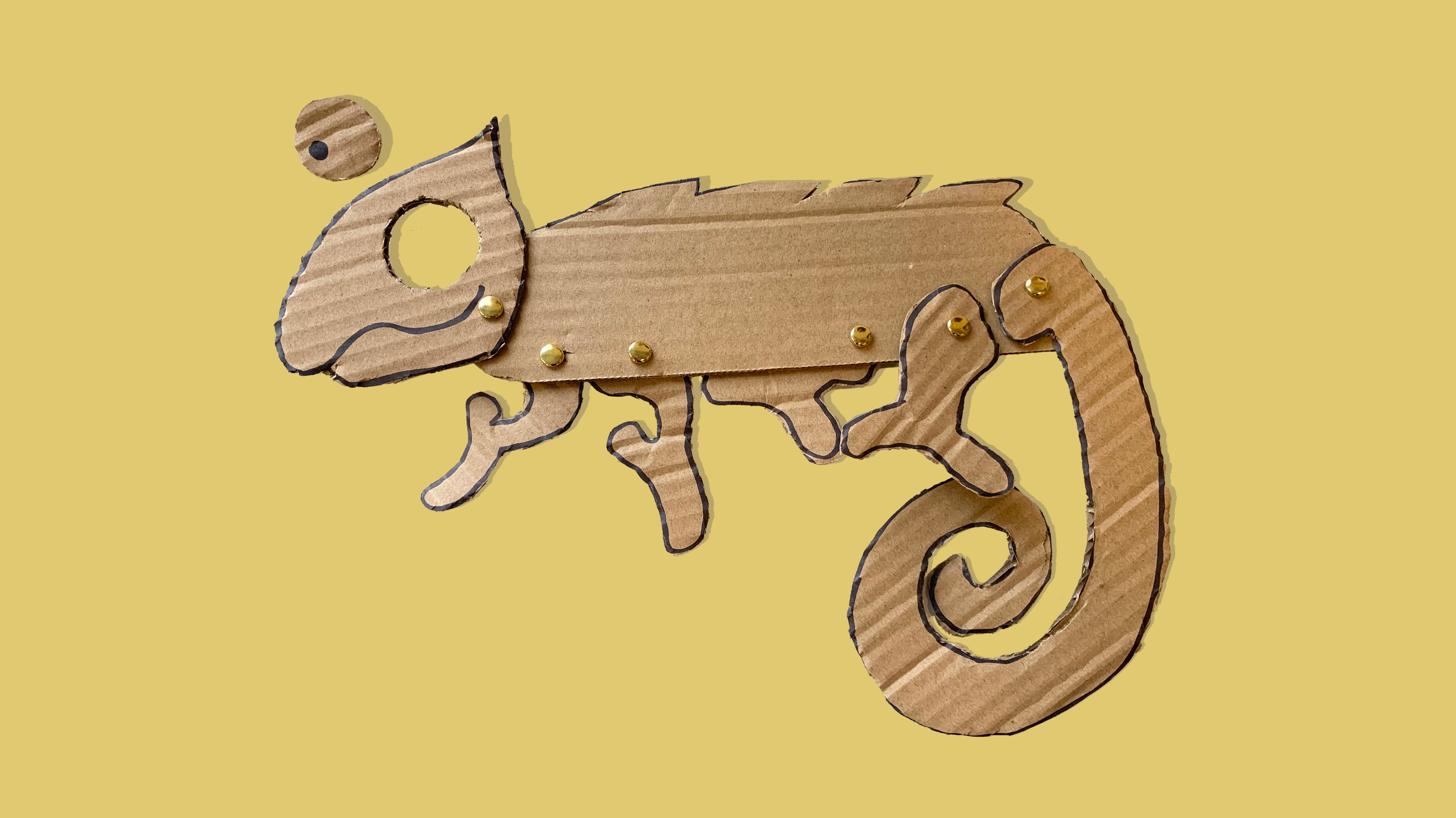 Attach the movable parts of the chameleon to its body with paper fasteners.