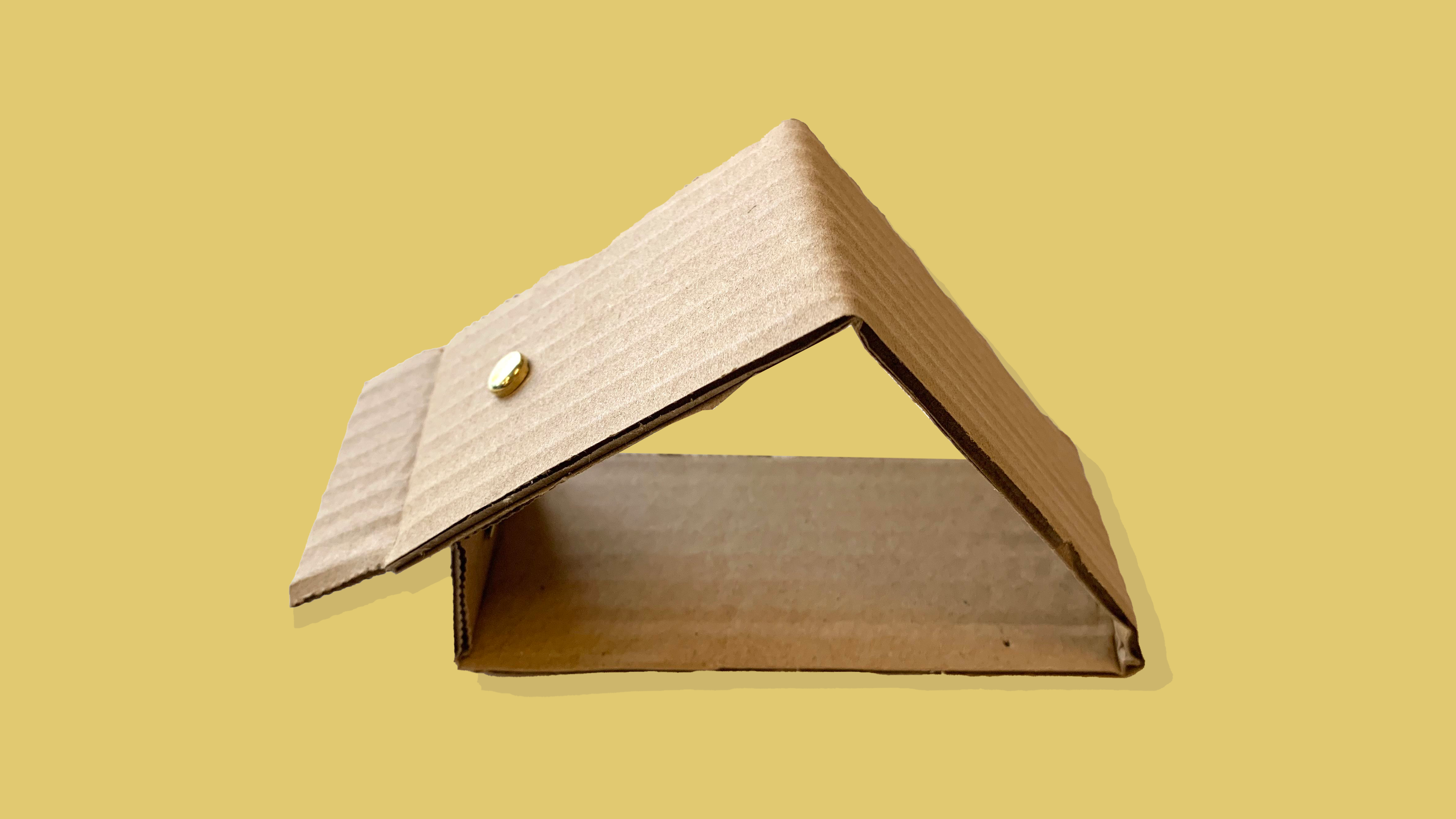 Attach the cardboard stand with servo and cardboard eye to chameleon using paper fastener.