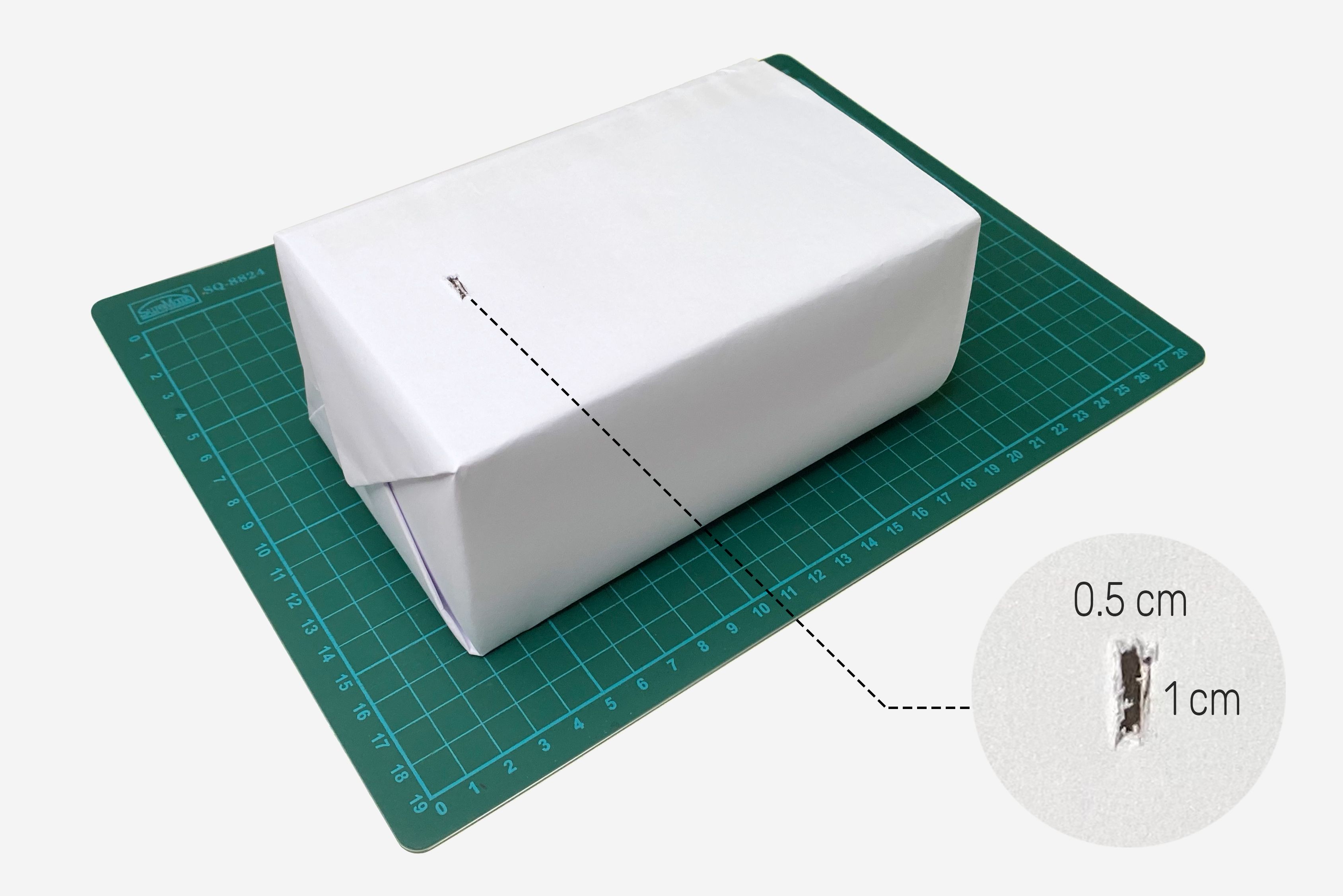 Next, we need to cut a small hole on one side of the box.