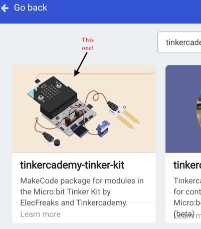 Good job! You finished setting it up! Before we get into actual coding... you have to download an extension. Go to the micro:bit website and create a new project. Scroll down and press ‘Advanced’ and look for ‘Extensions’. Click on it and search ‘tinker’. Download the extension showed in the picture.