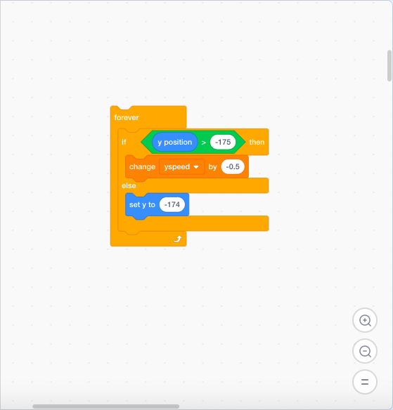 Here, we are simulating free fall by setting the rate of change of yspeed to be -0.5. You may alter this value as you see fit to customise the speed of your ball, but do make sure it’s negative so that gravity acts downwards instead of upwards.