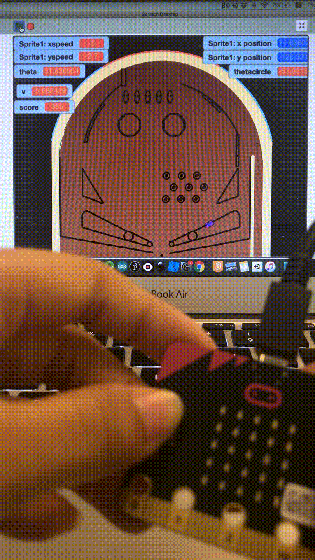 Create a 2D pinball board on Scratch with semi-realistic physics and a micro:bit controller