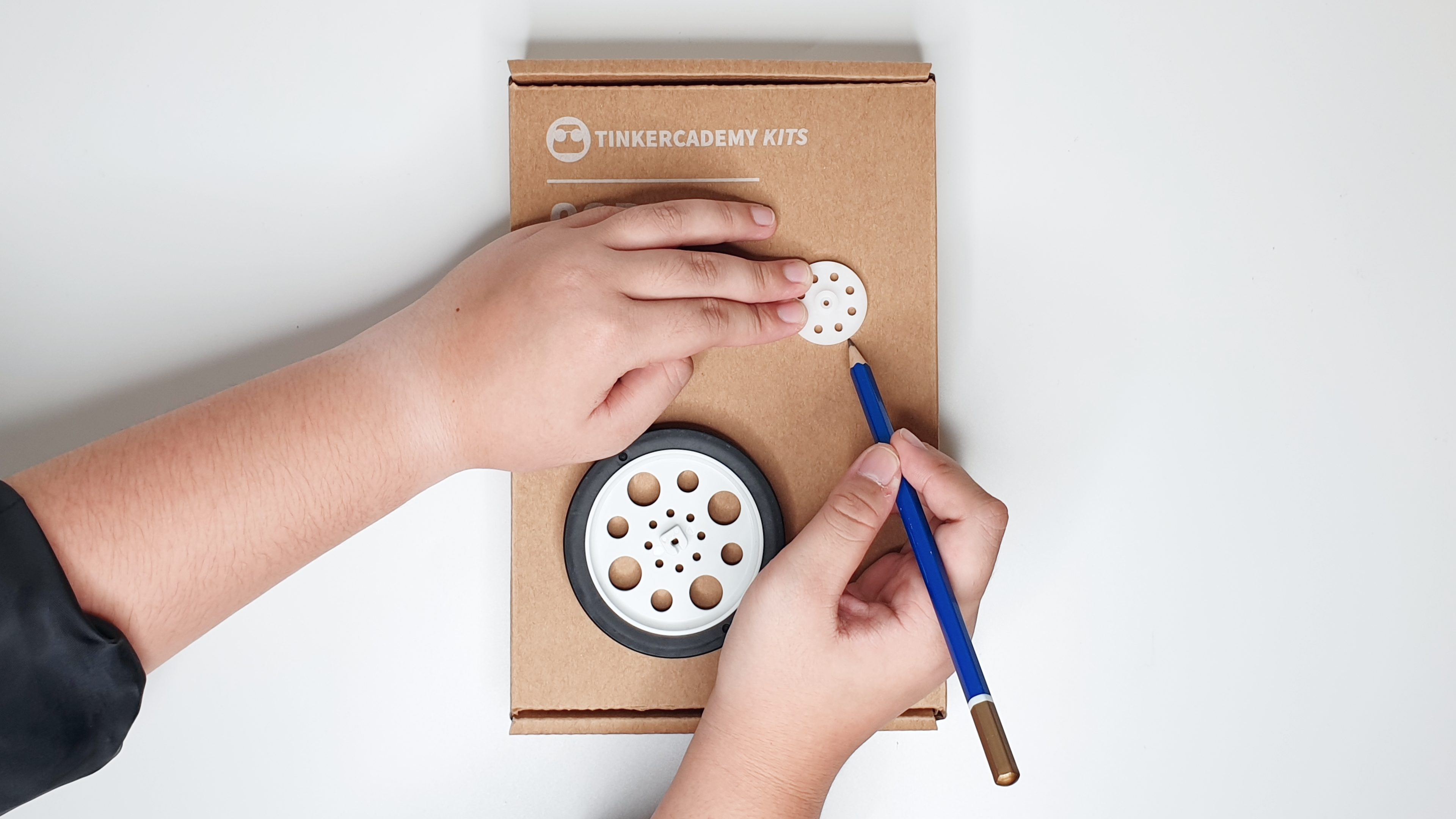 Mark out the placement of the wheel and servo shaft on the flap of your box