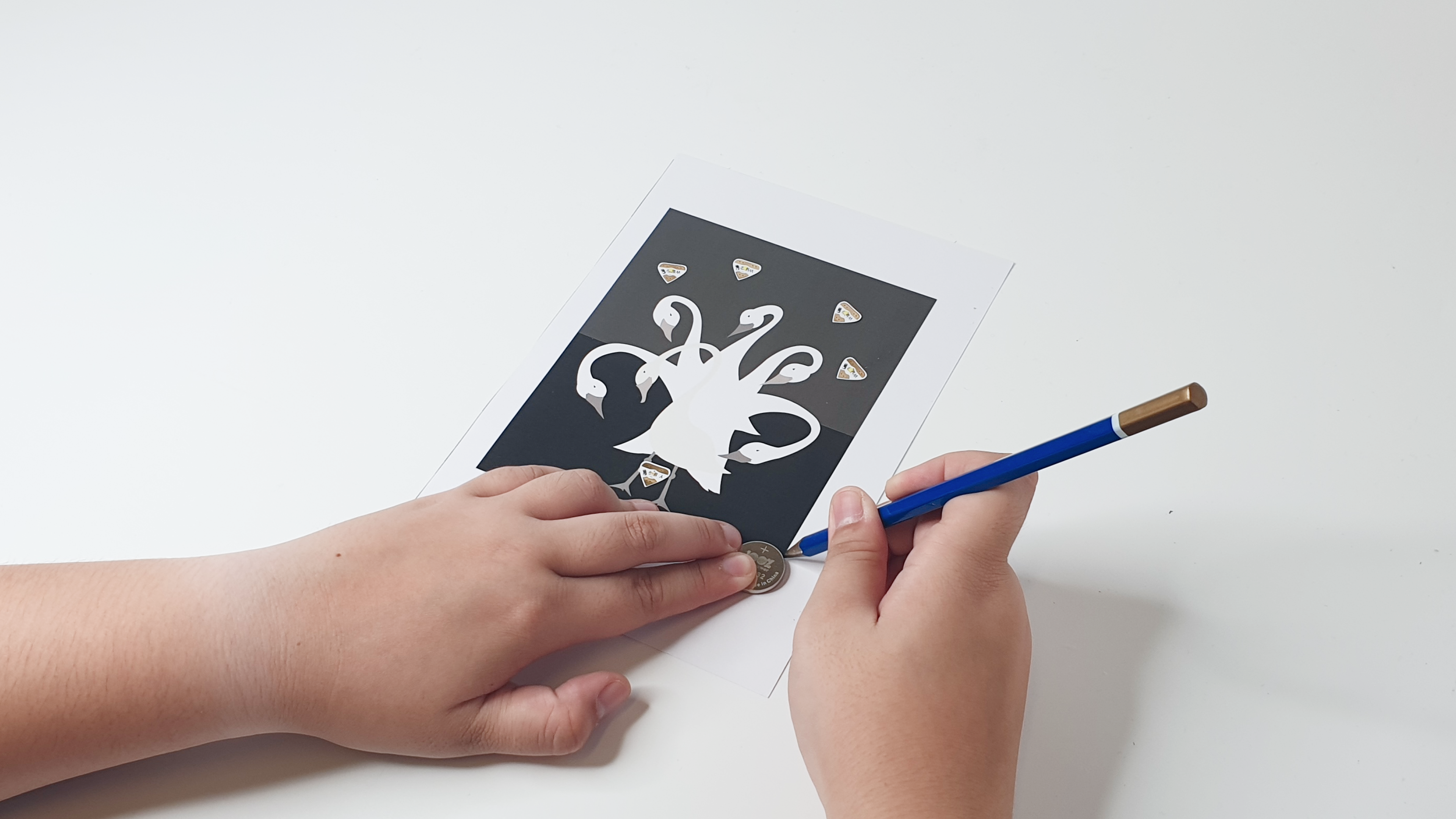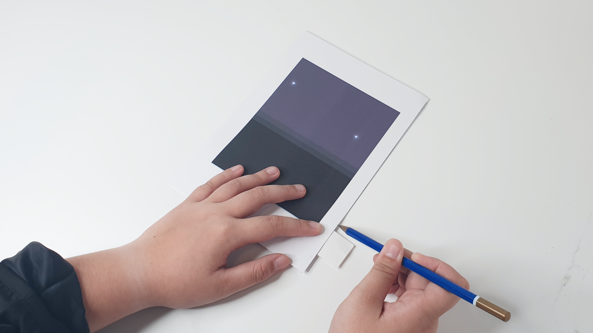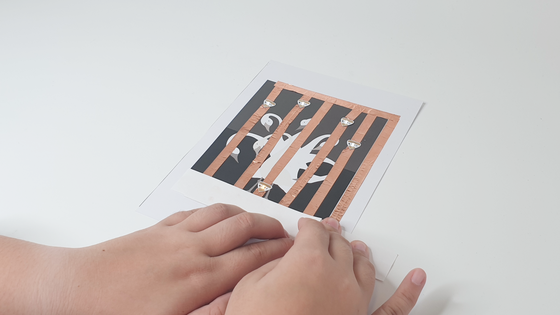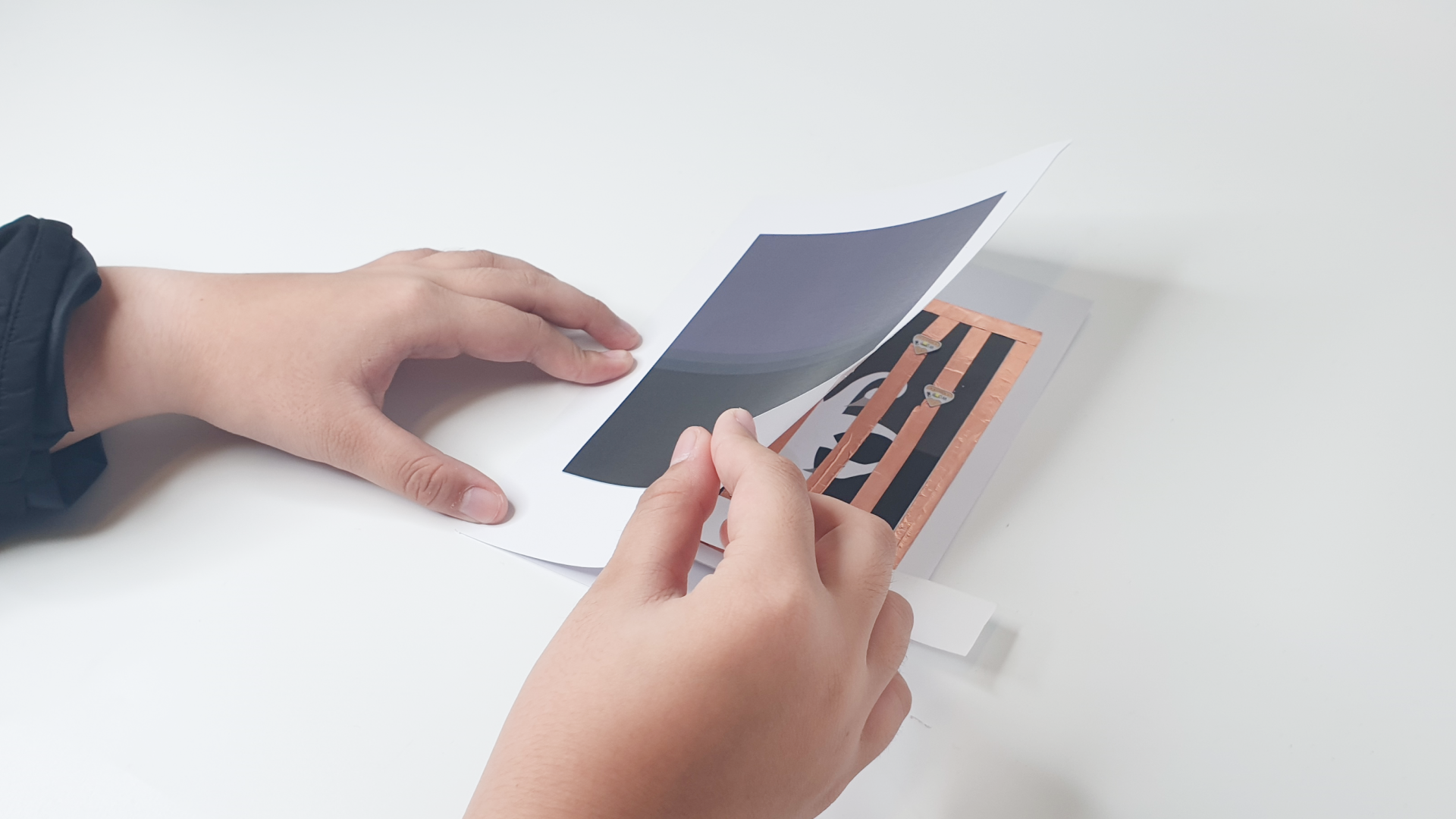 (c) Stick the coloured side of paper to the black-and-white side to cover the circuit