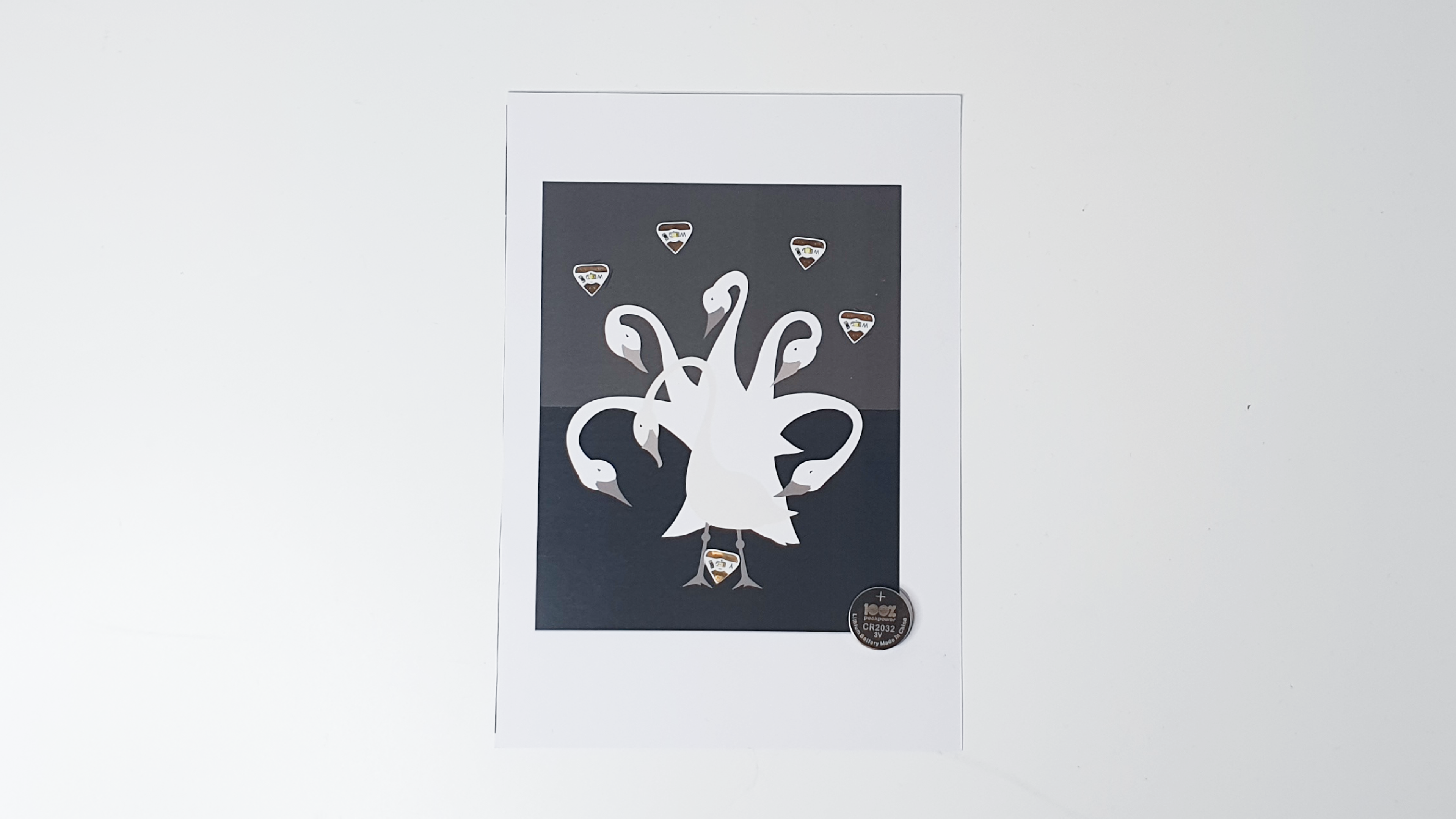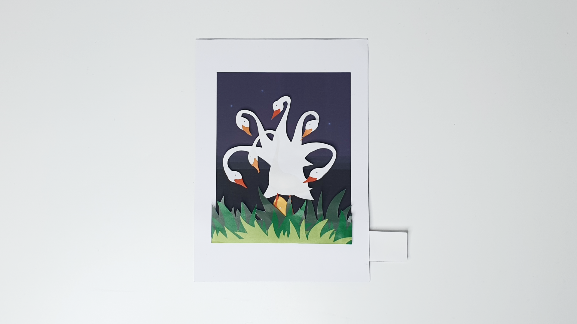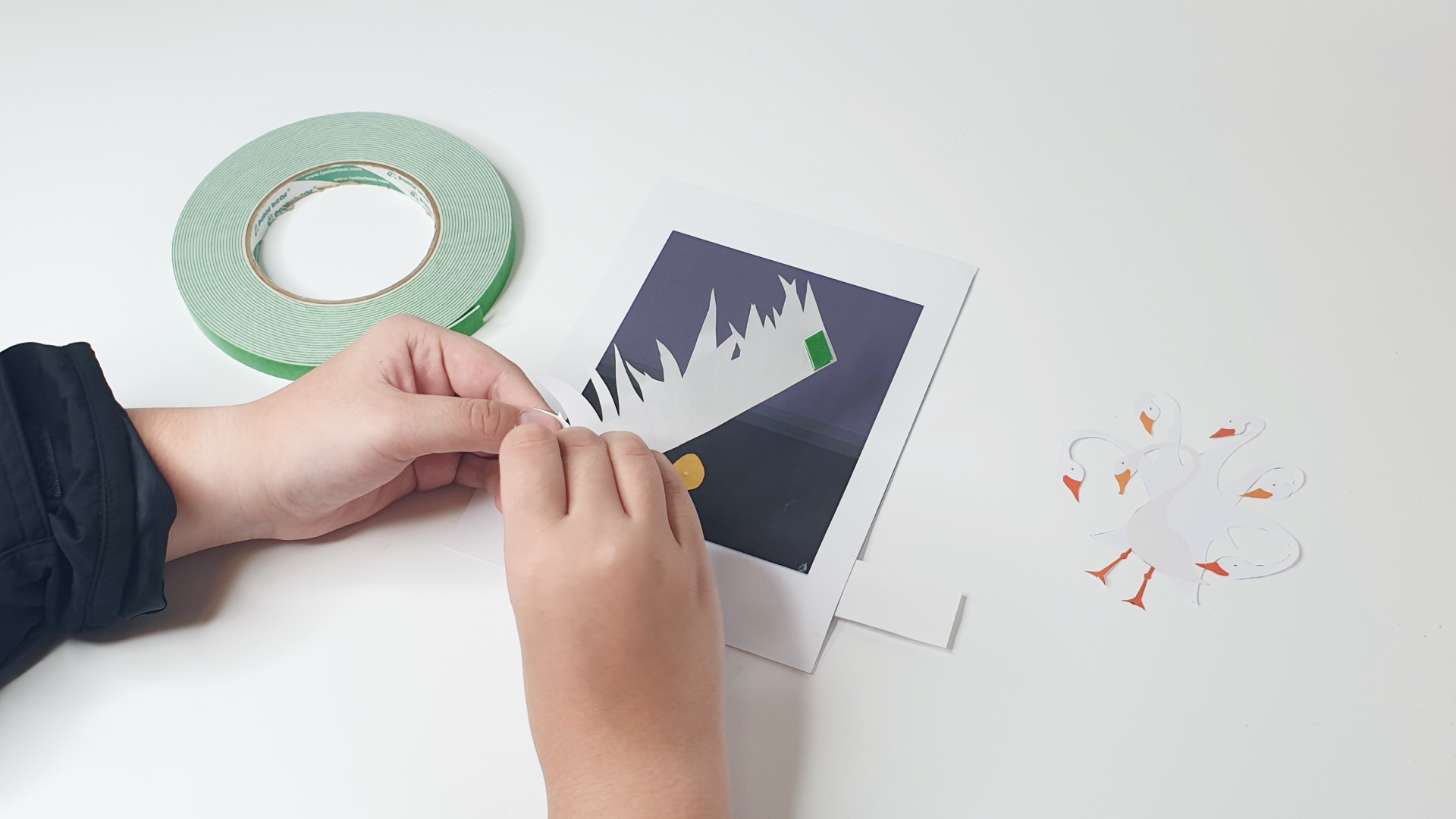 (c) Stick two layers of foam tape on the geese and secure it to the card.
