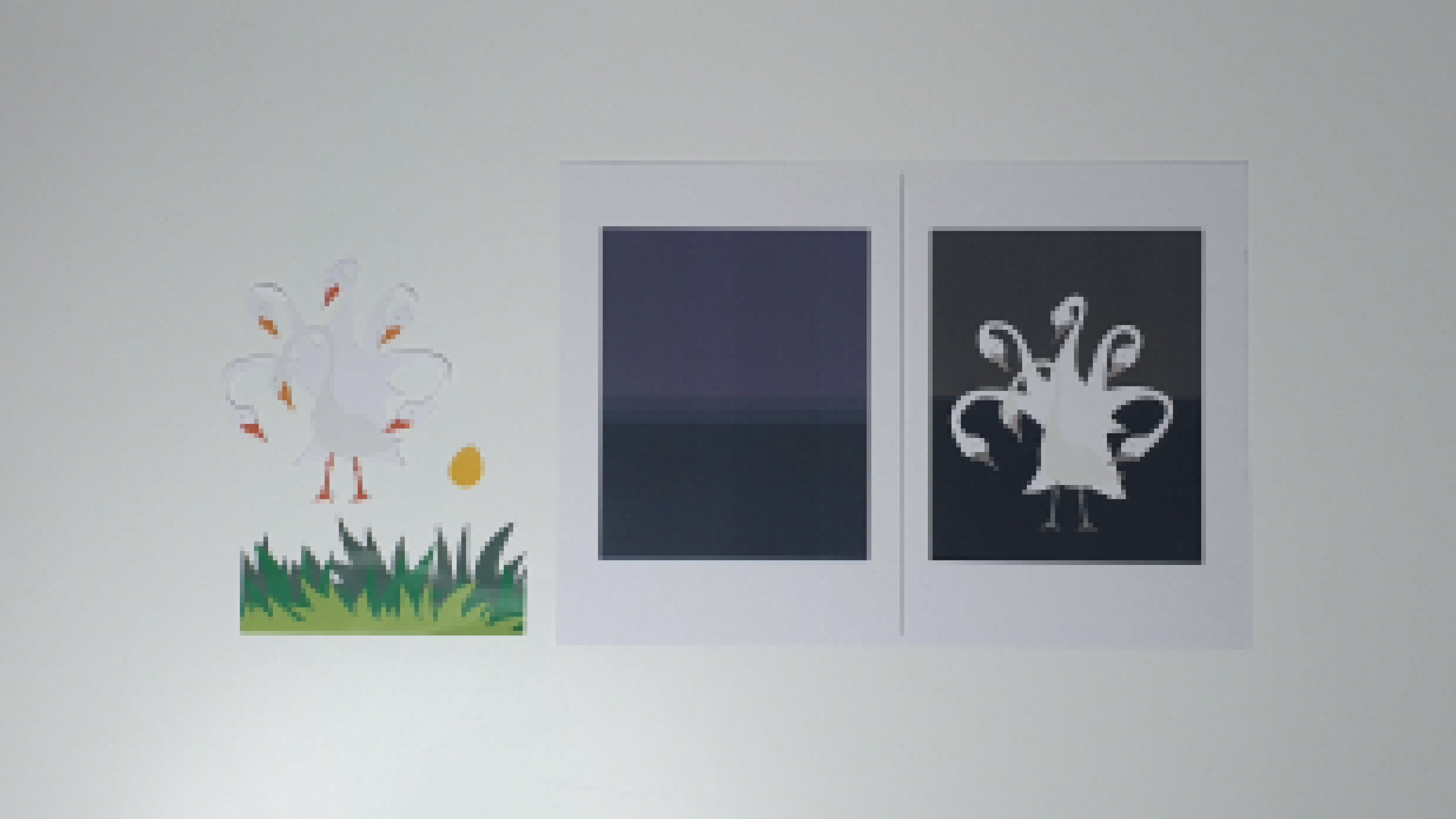 (b)The yellow LED should be where the egg is, and the white ones should be the stars in the sky.
