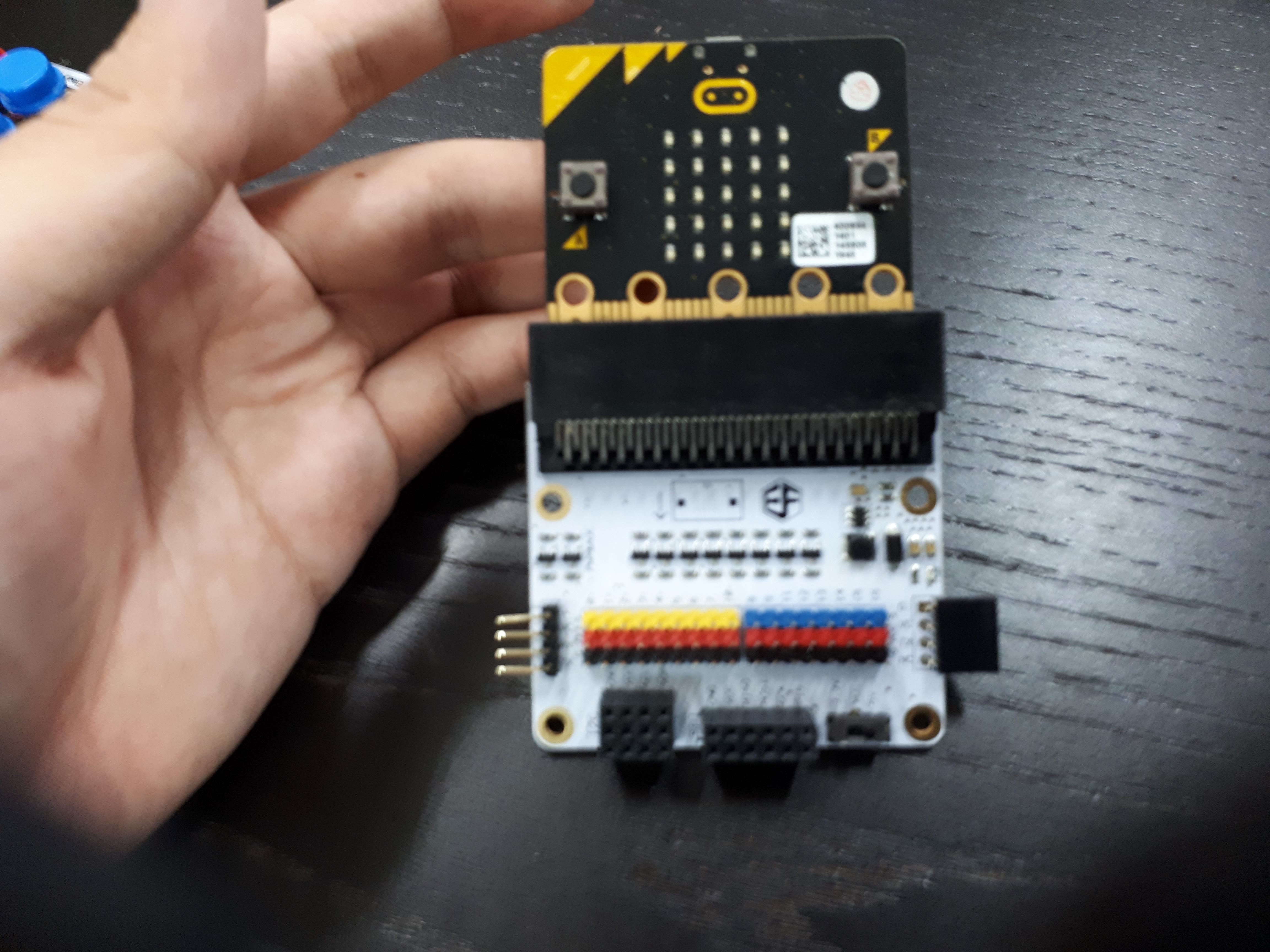 Insert the micro:bit into the breakout board. There is no difference between using the black or white colour breakout board