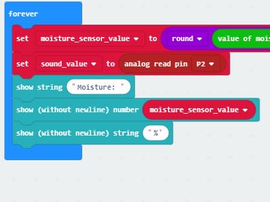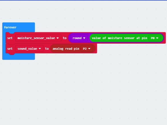Set the two variables "moisture_ sensor_value" and "sound_value" to the values as seen above.