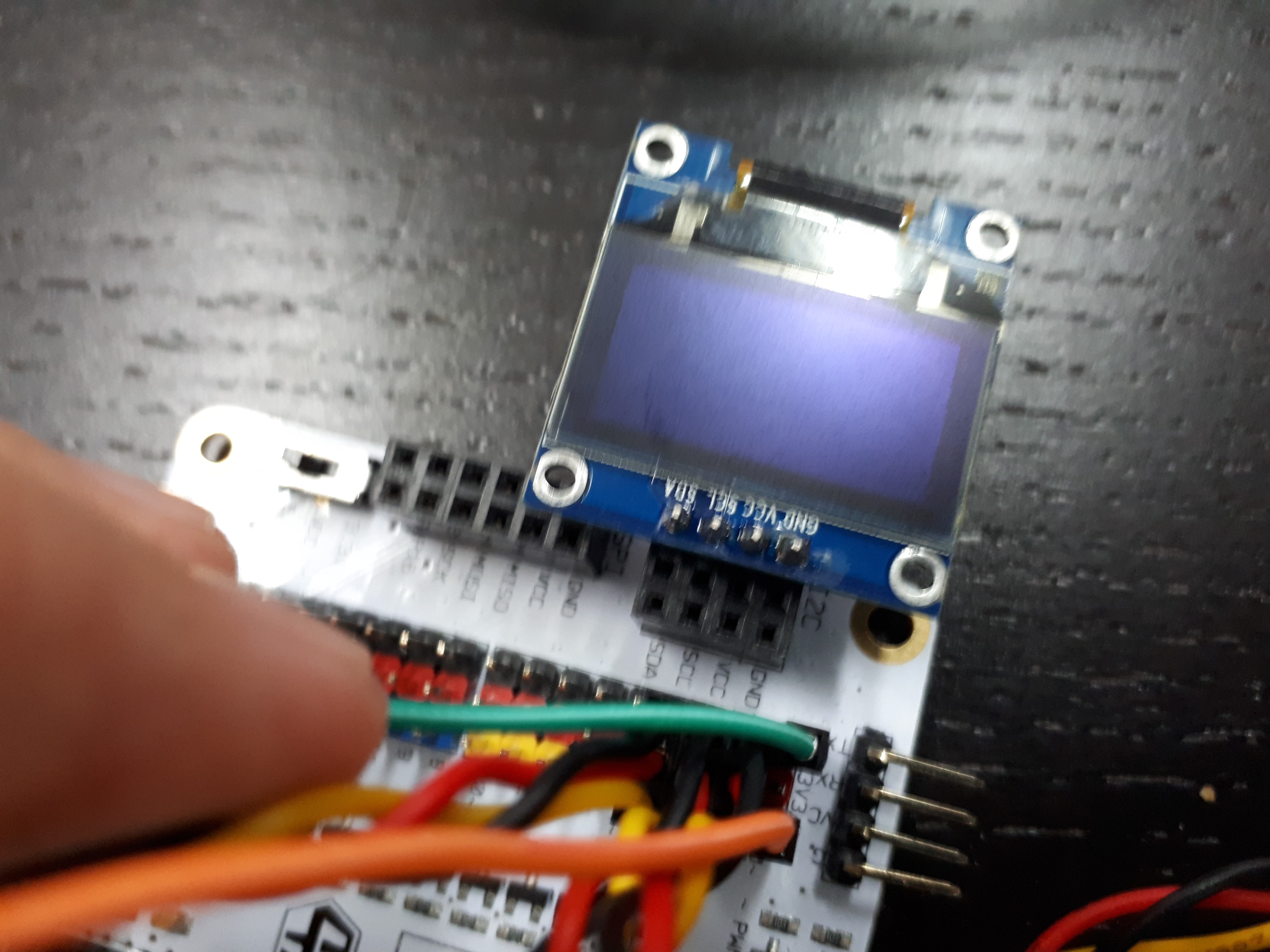 insert the OLED screen into the I2C ports, any four will do, ensure that the pins are connected correctly(GND to GND, SDA to SDA)