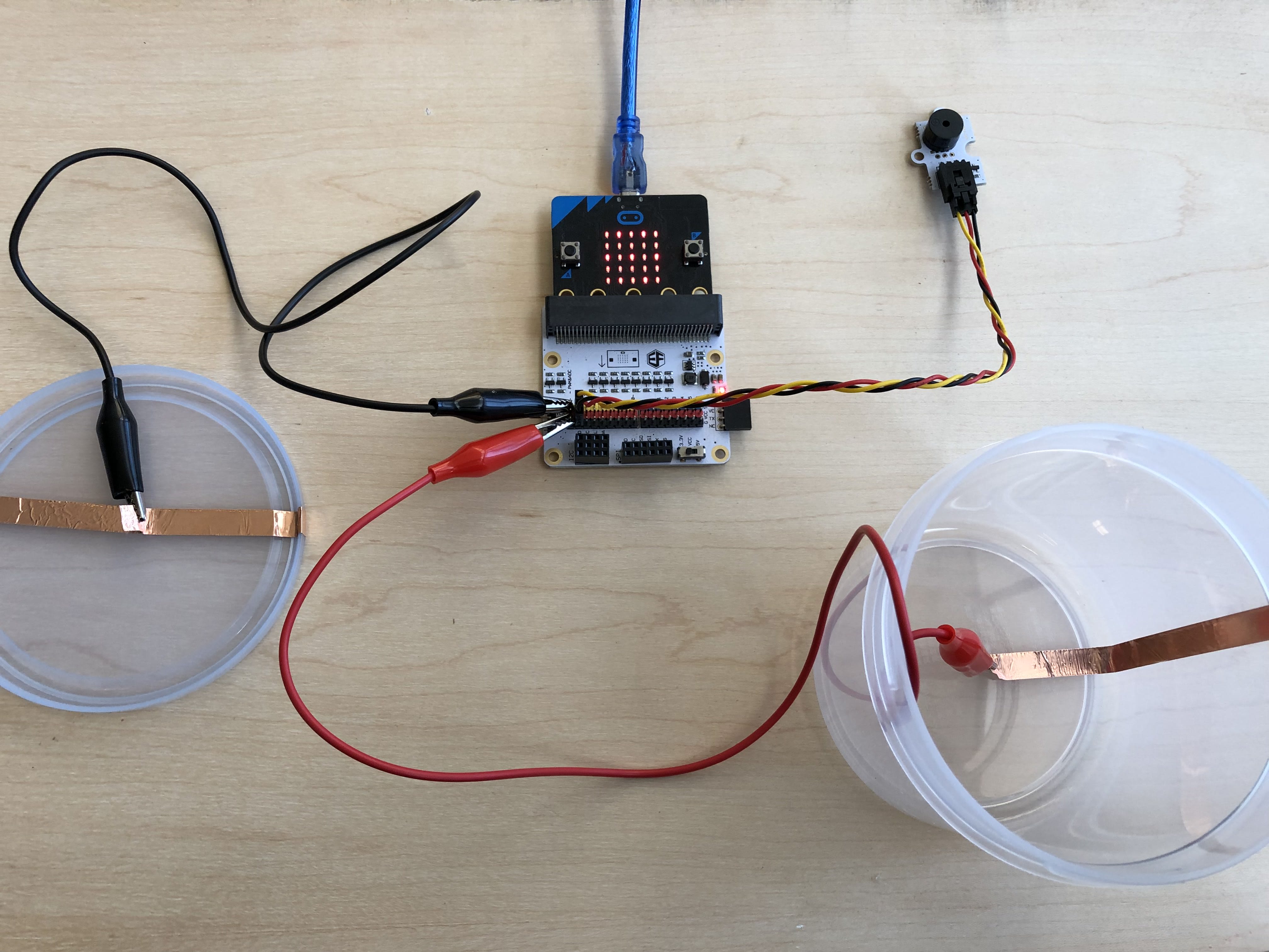 • Connect the copper tape on the jar to the black P0 pin with a crocodile clip
