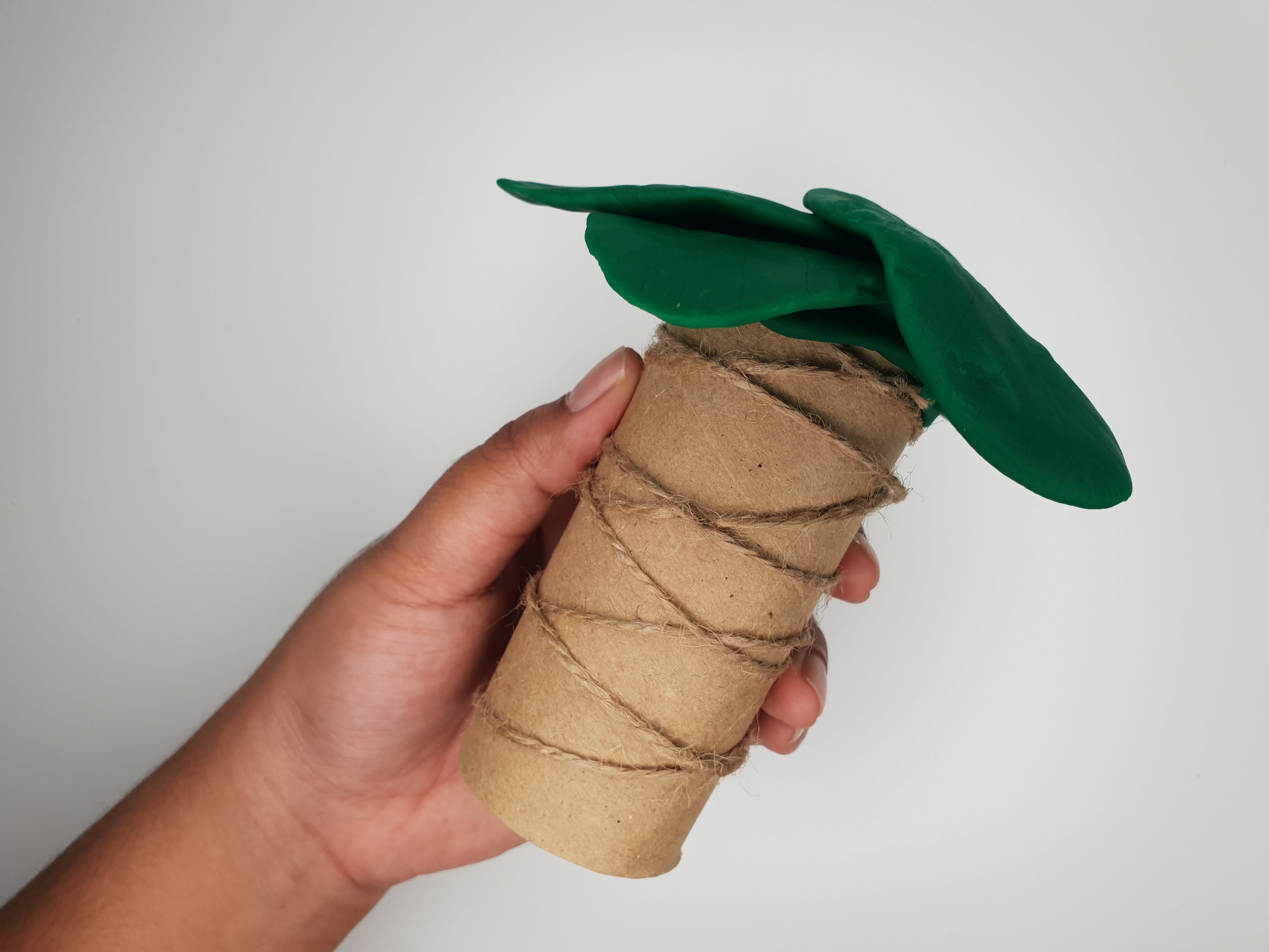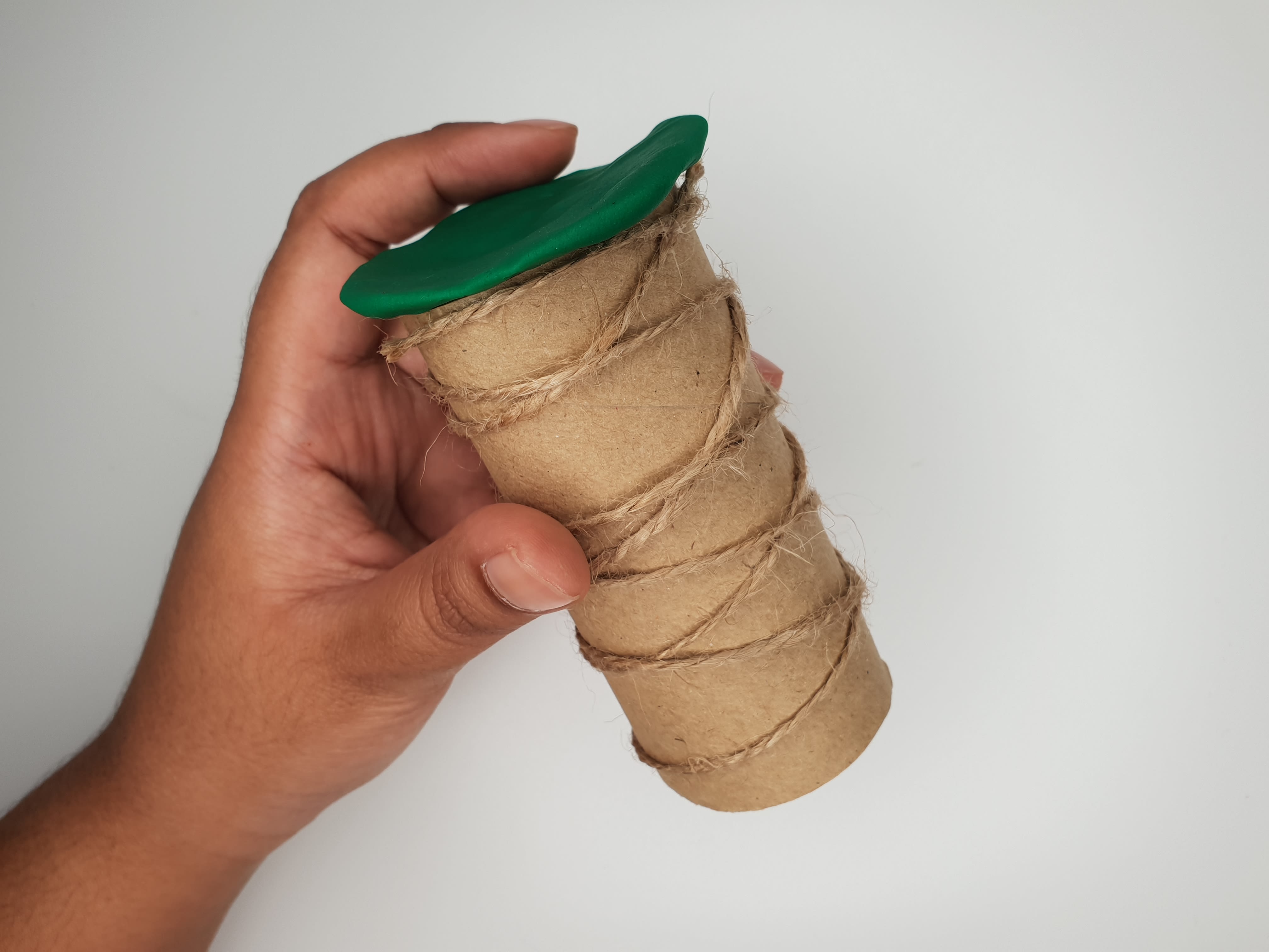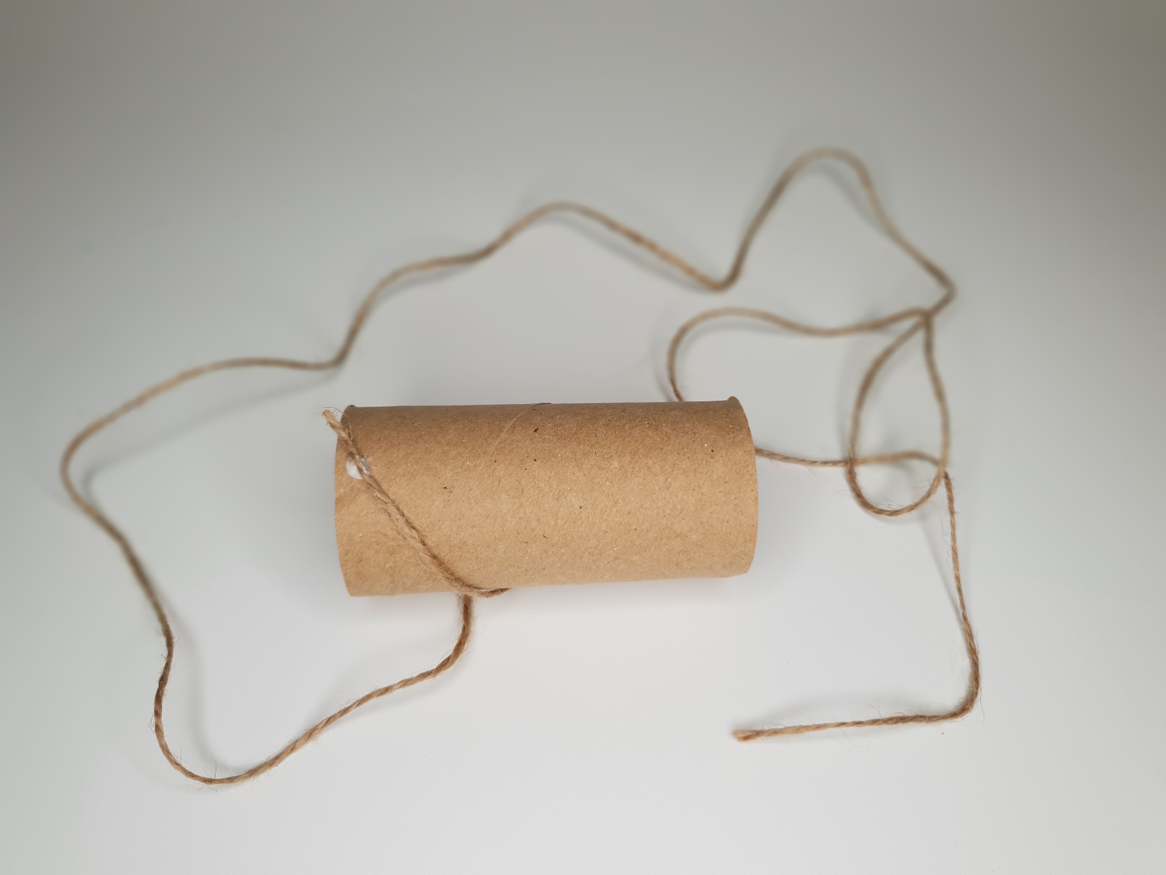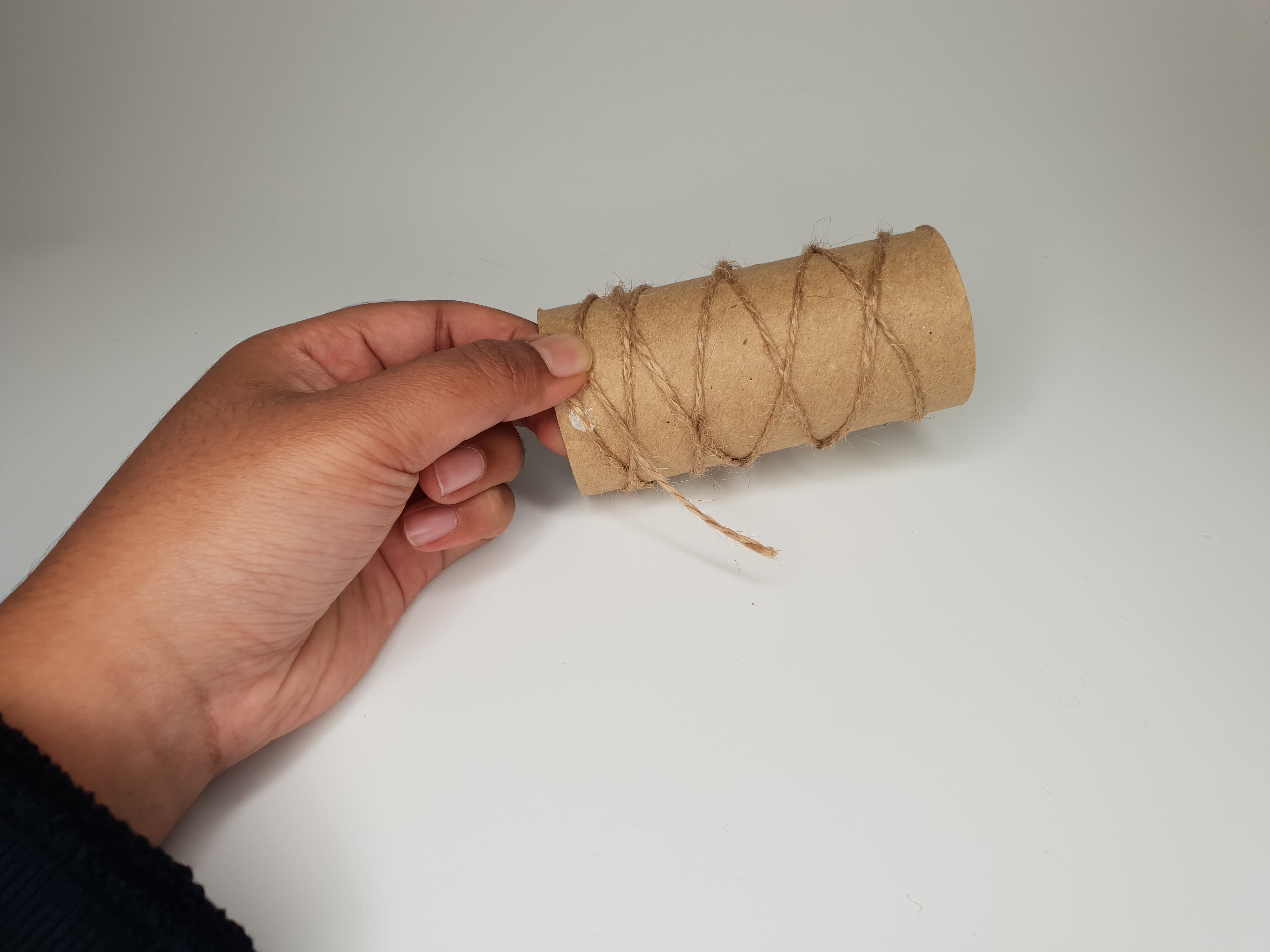 To make the "tree trunk", coil twine string around the tube. Then, secure the ends with glue.