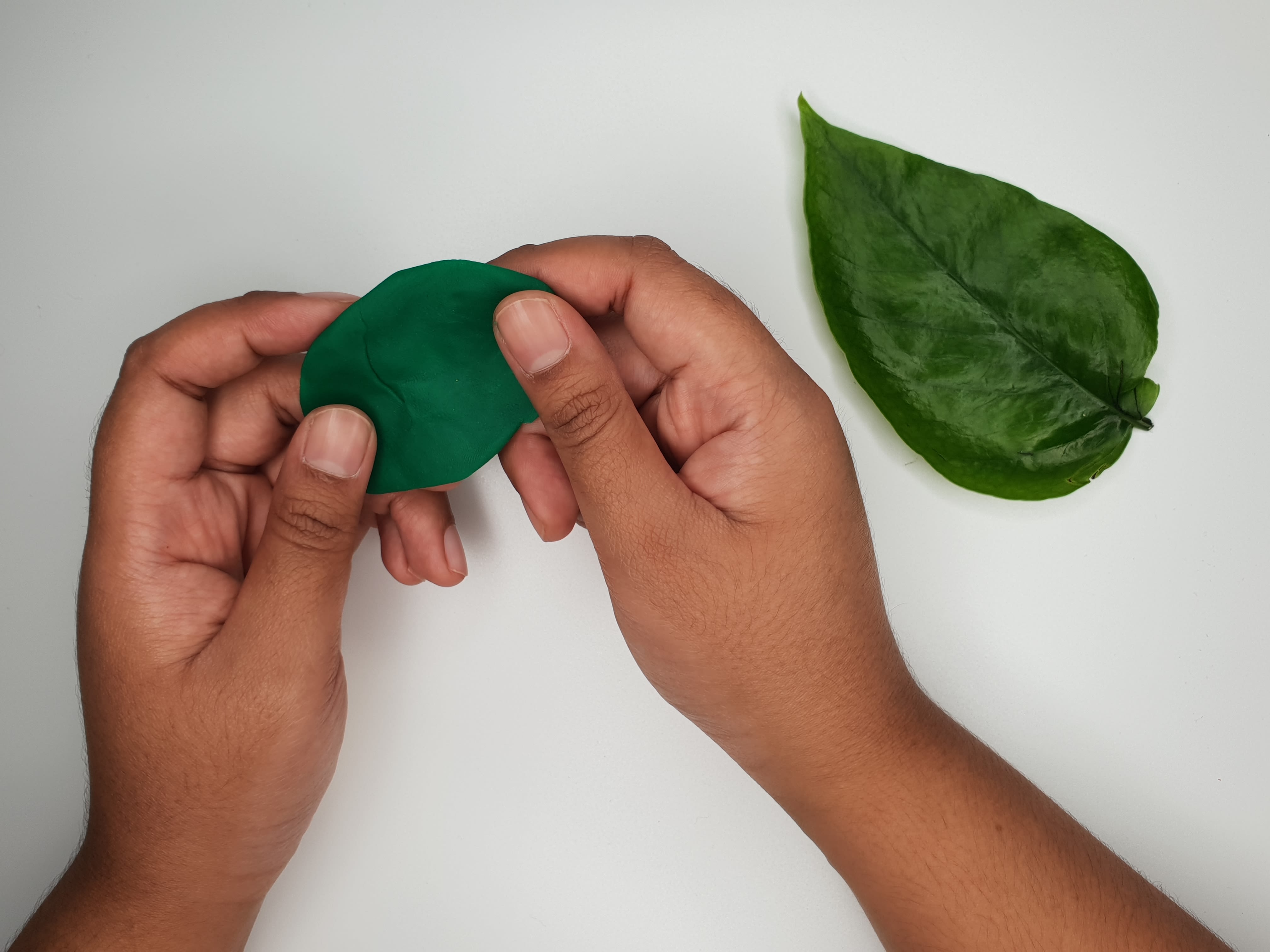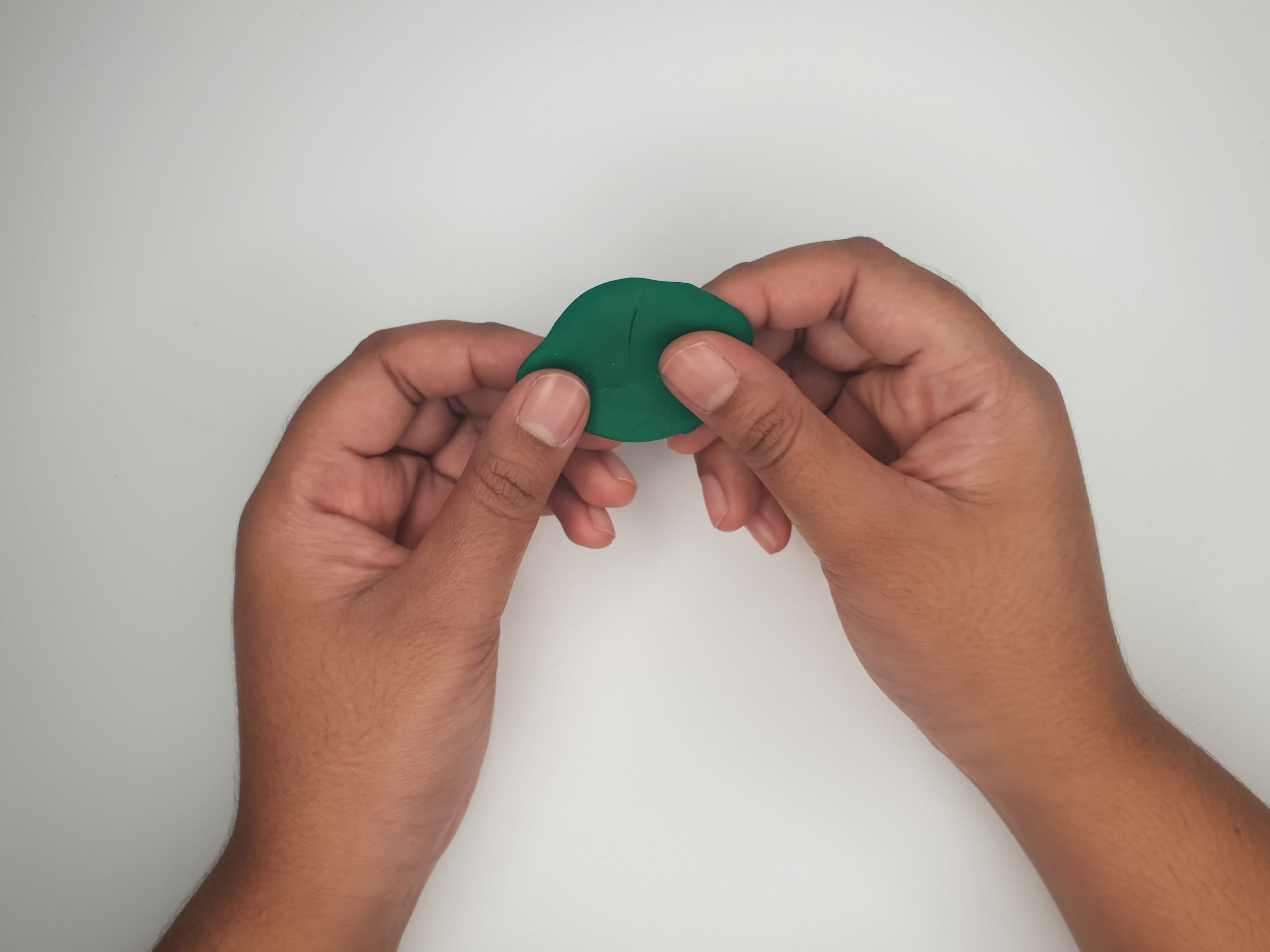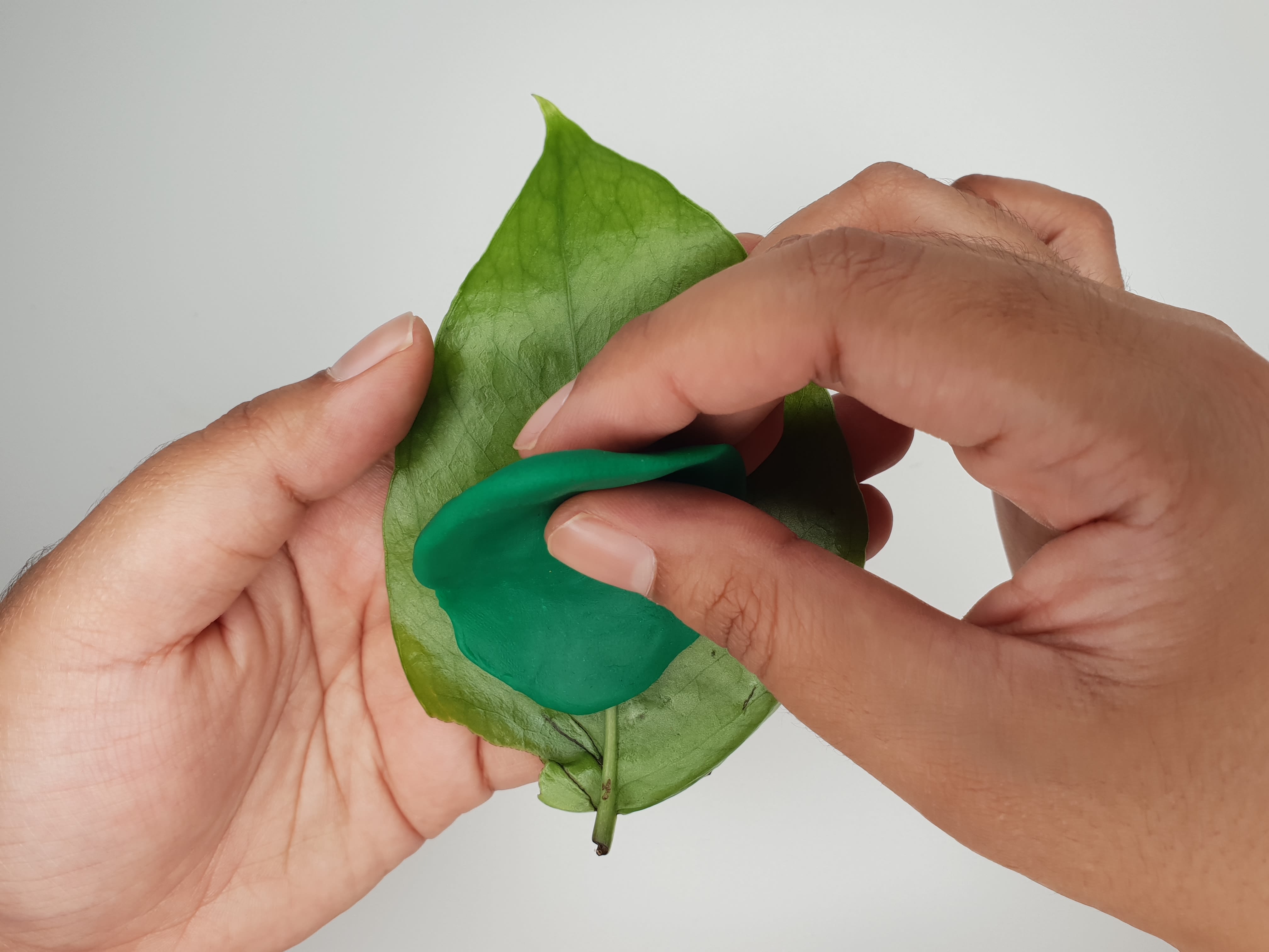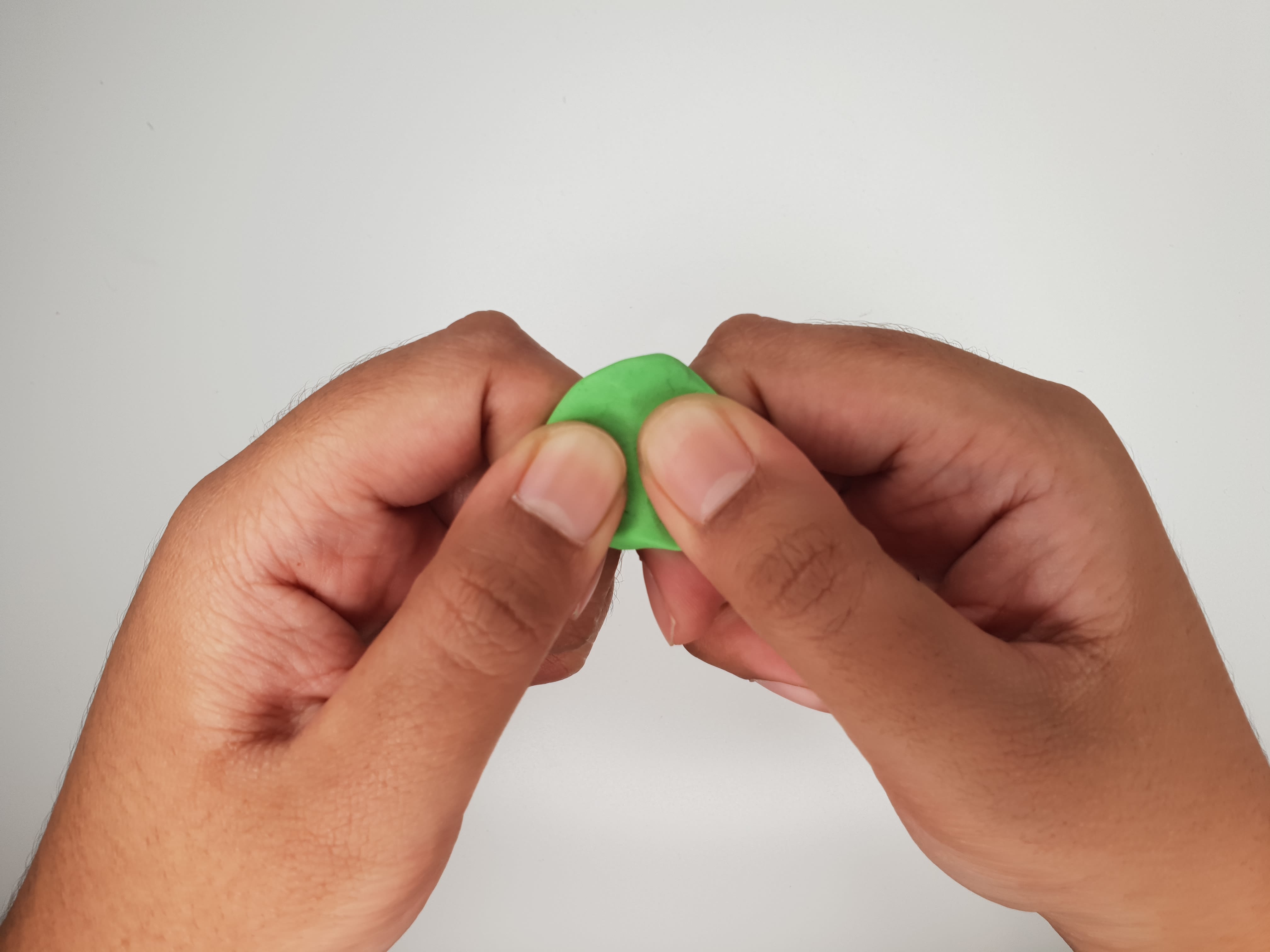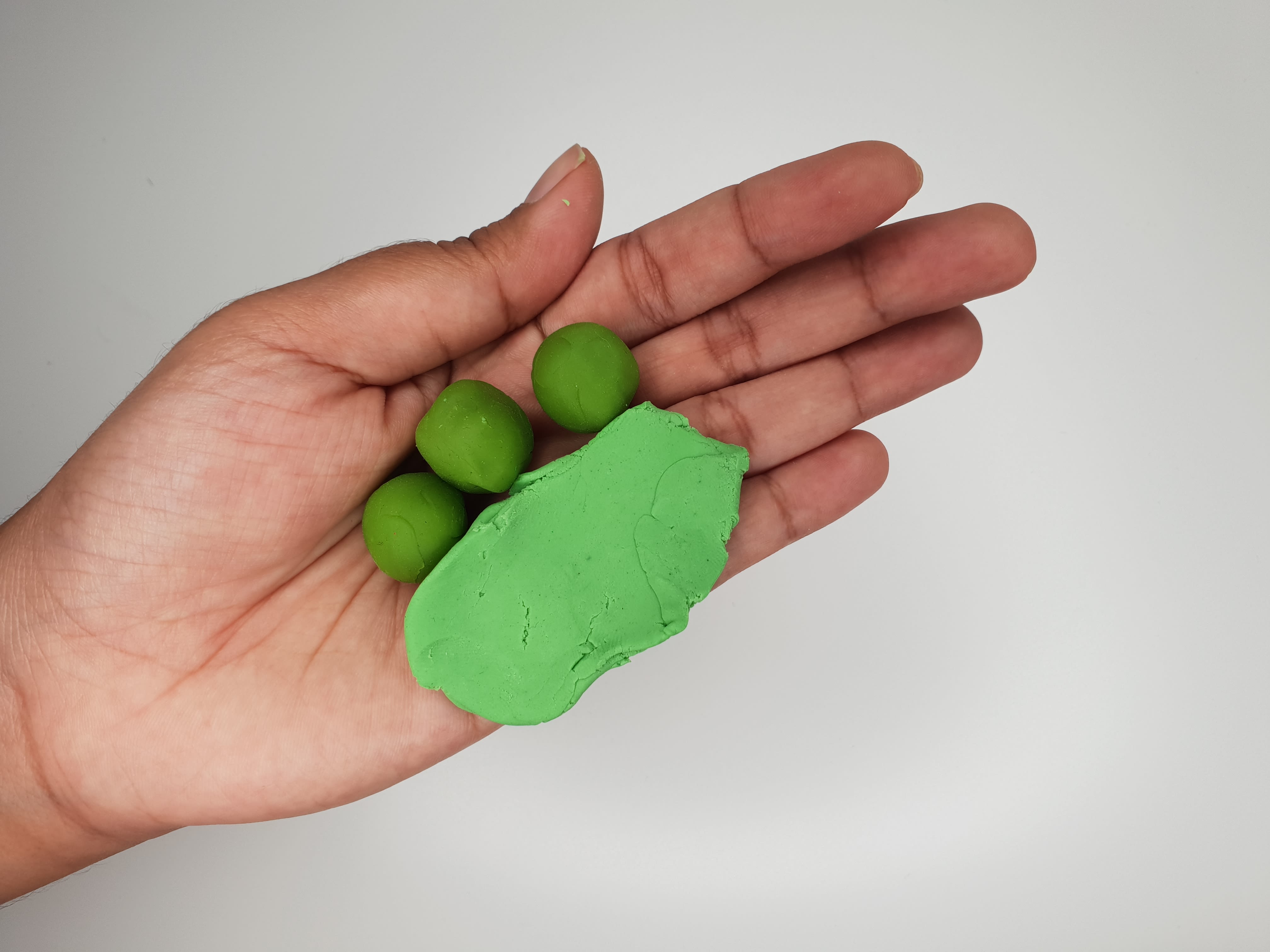 Roll out green conductive dough into ~2cm ball. Then flatten it into the shape of a leave