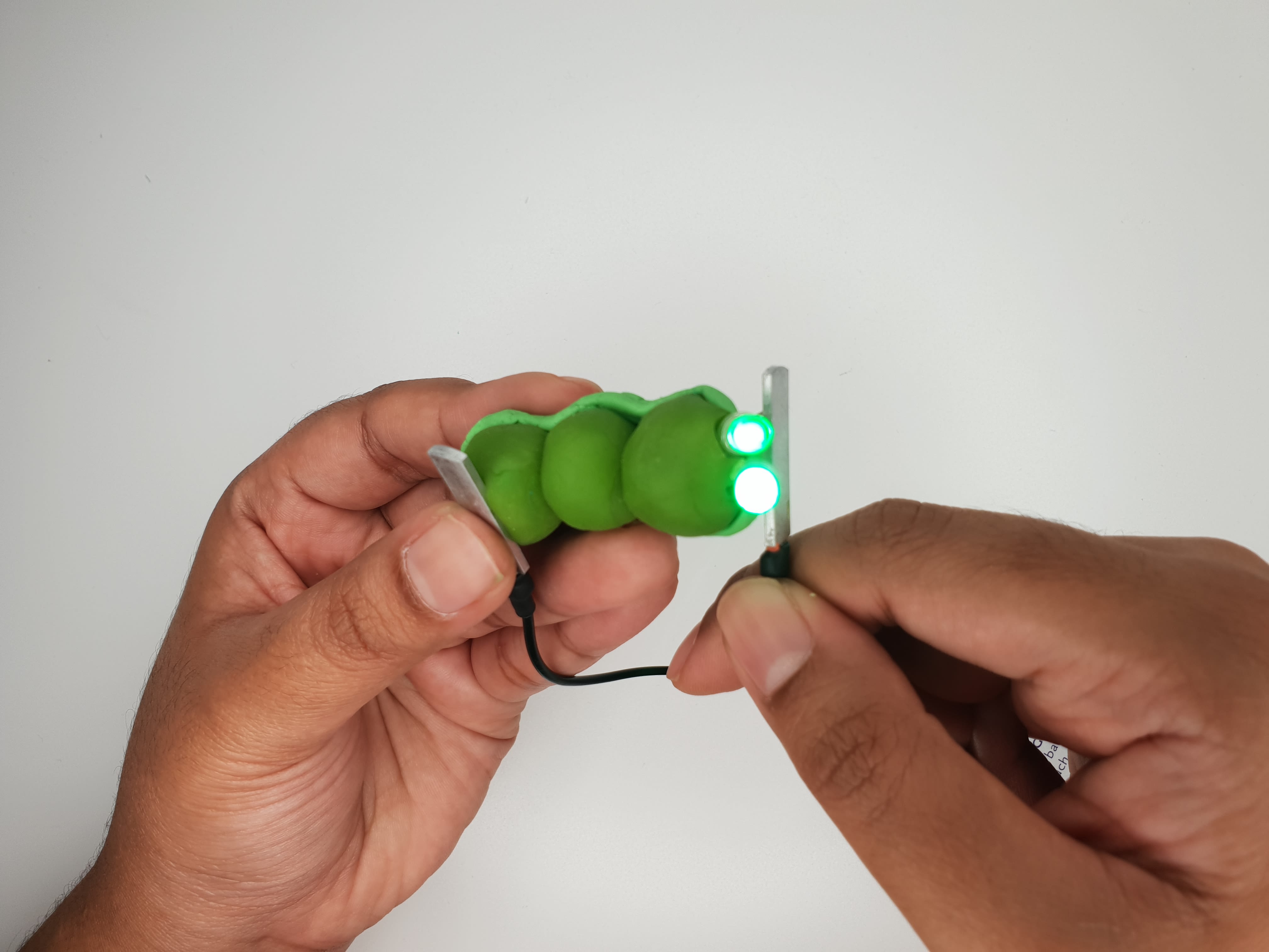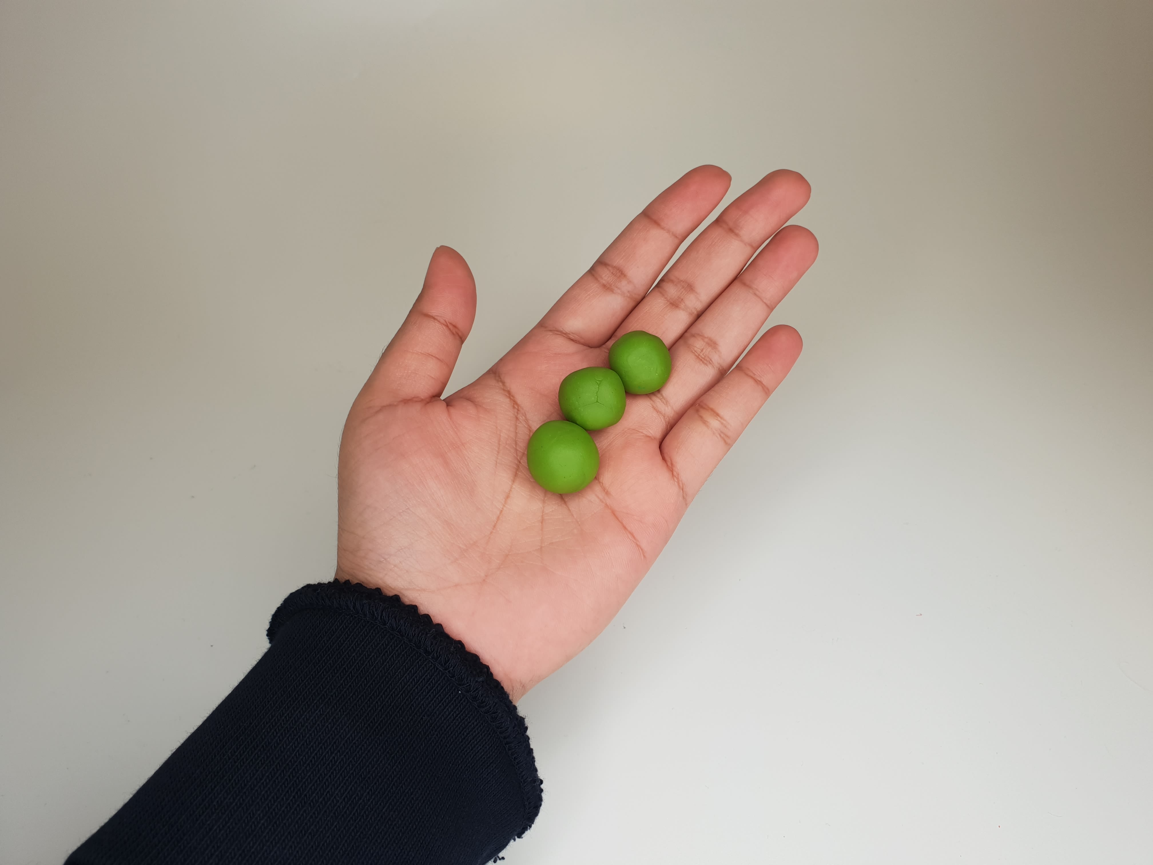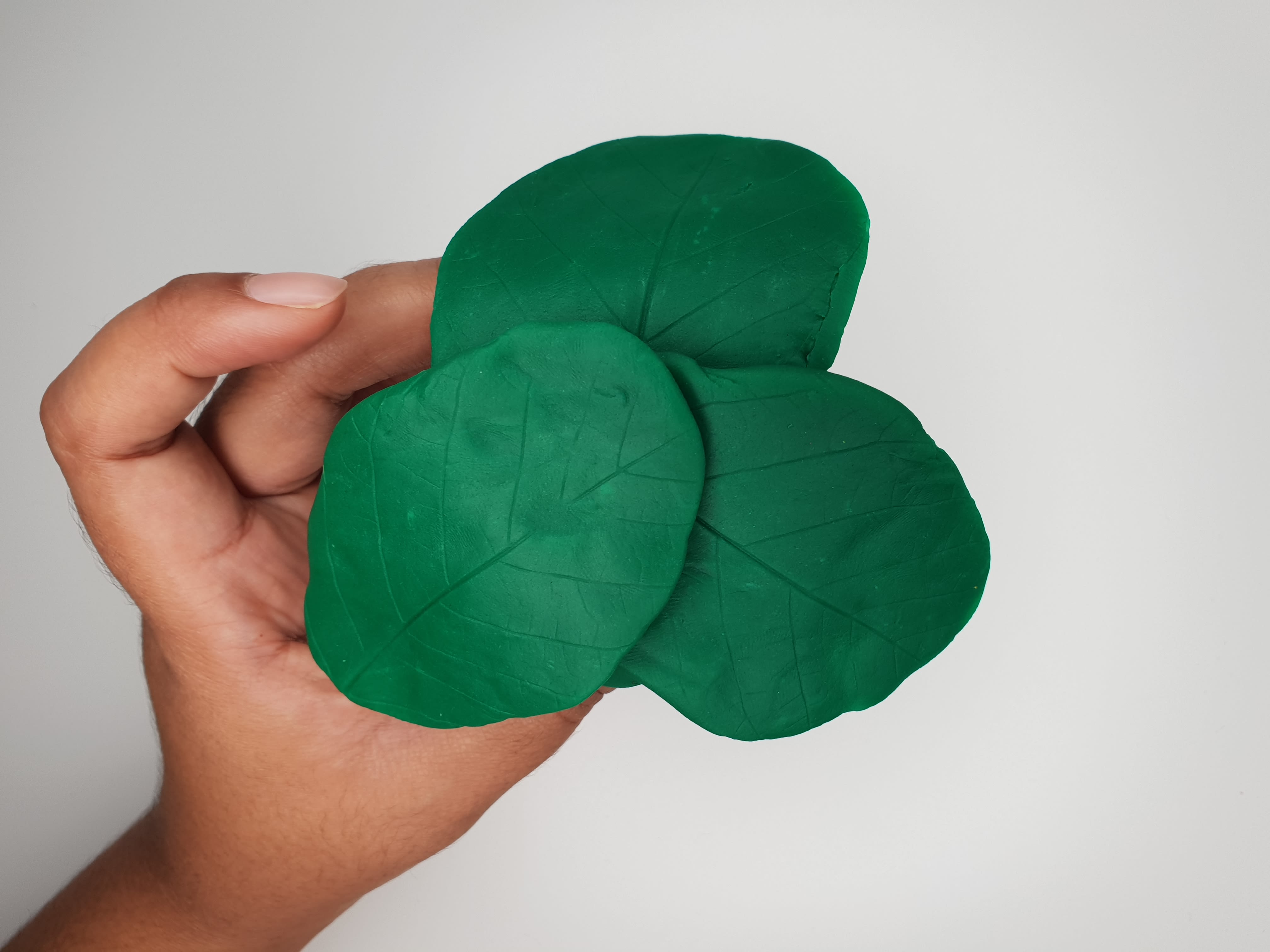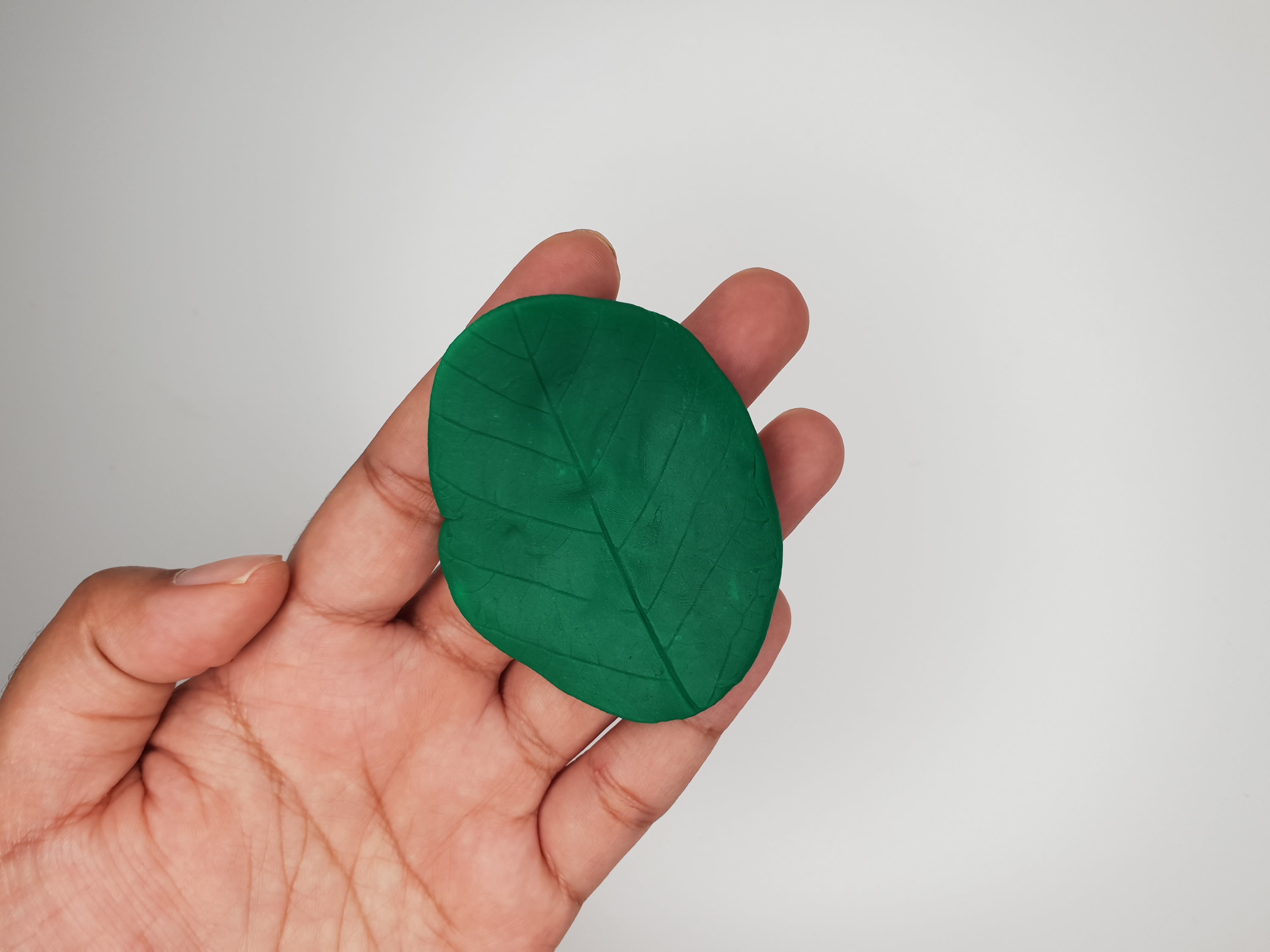 Roll out green conductive dough into ~2cm ball. Then flatten it into the shape of a leave