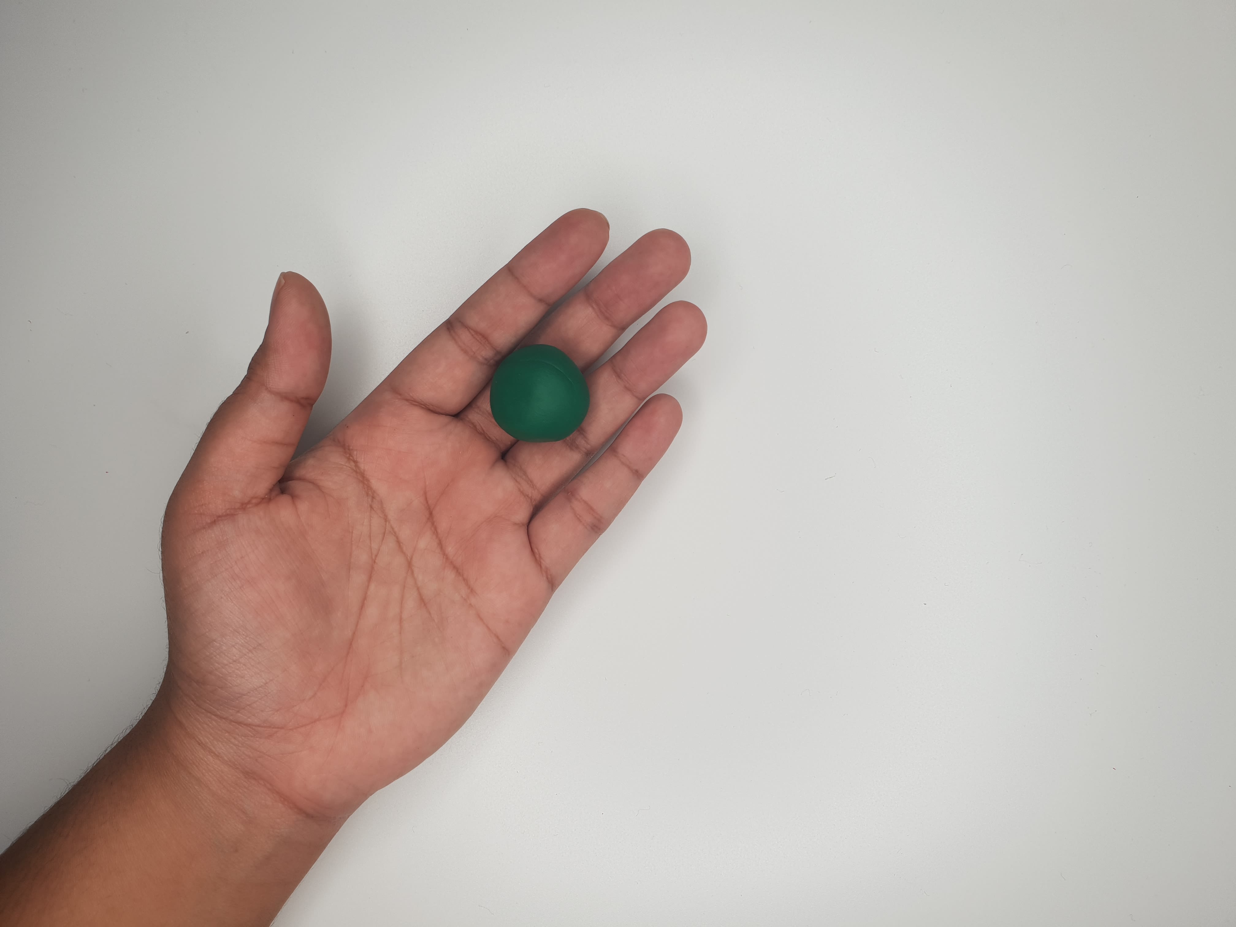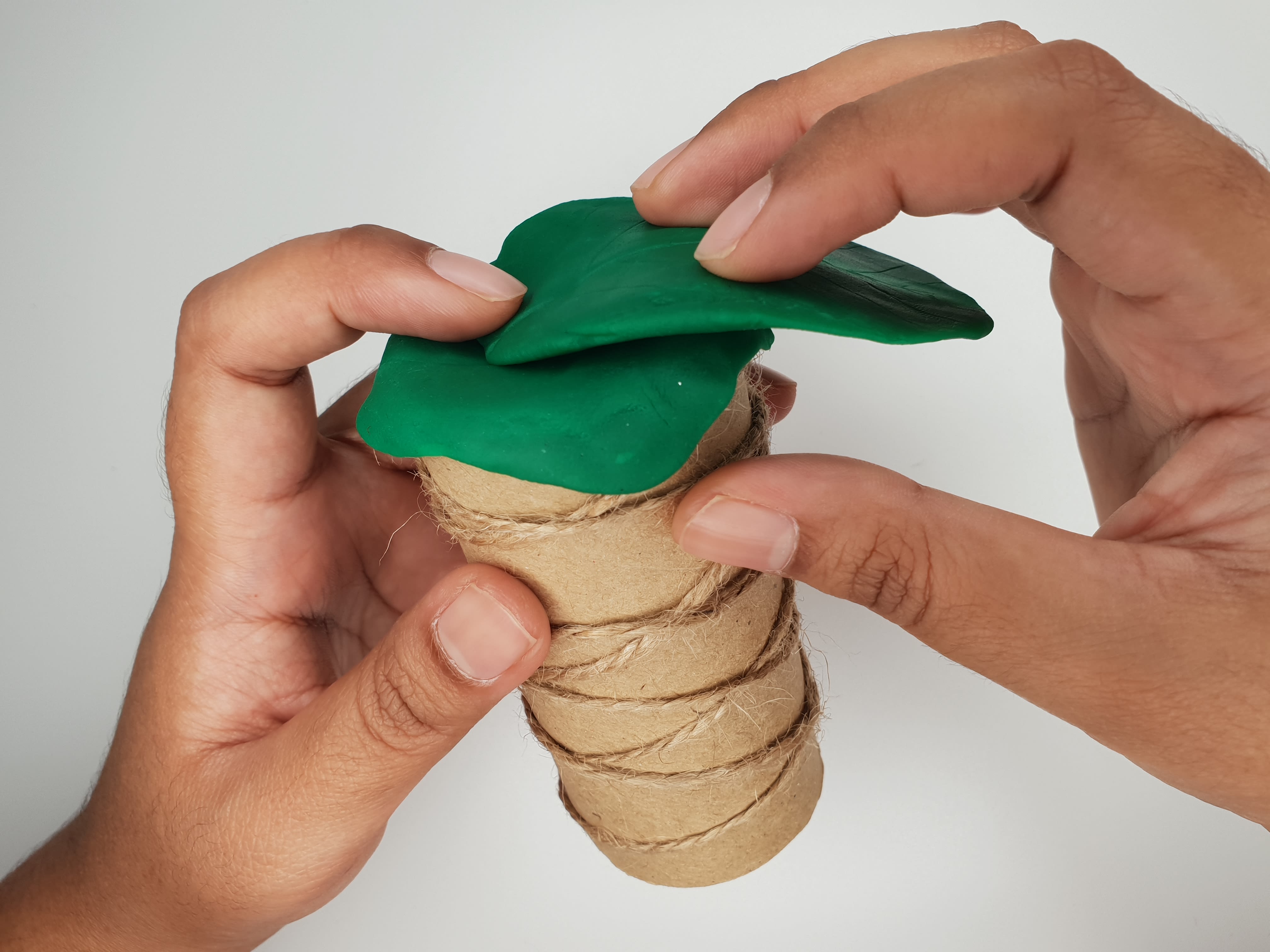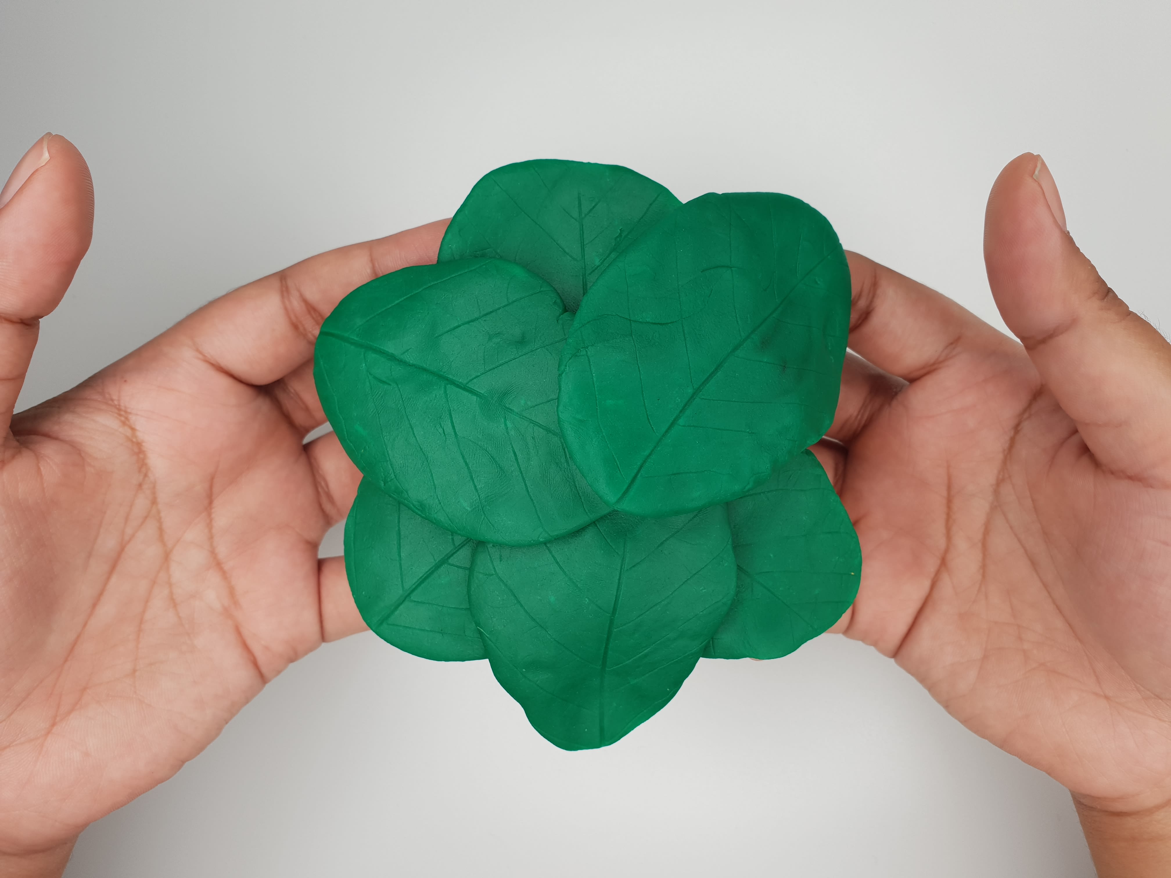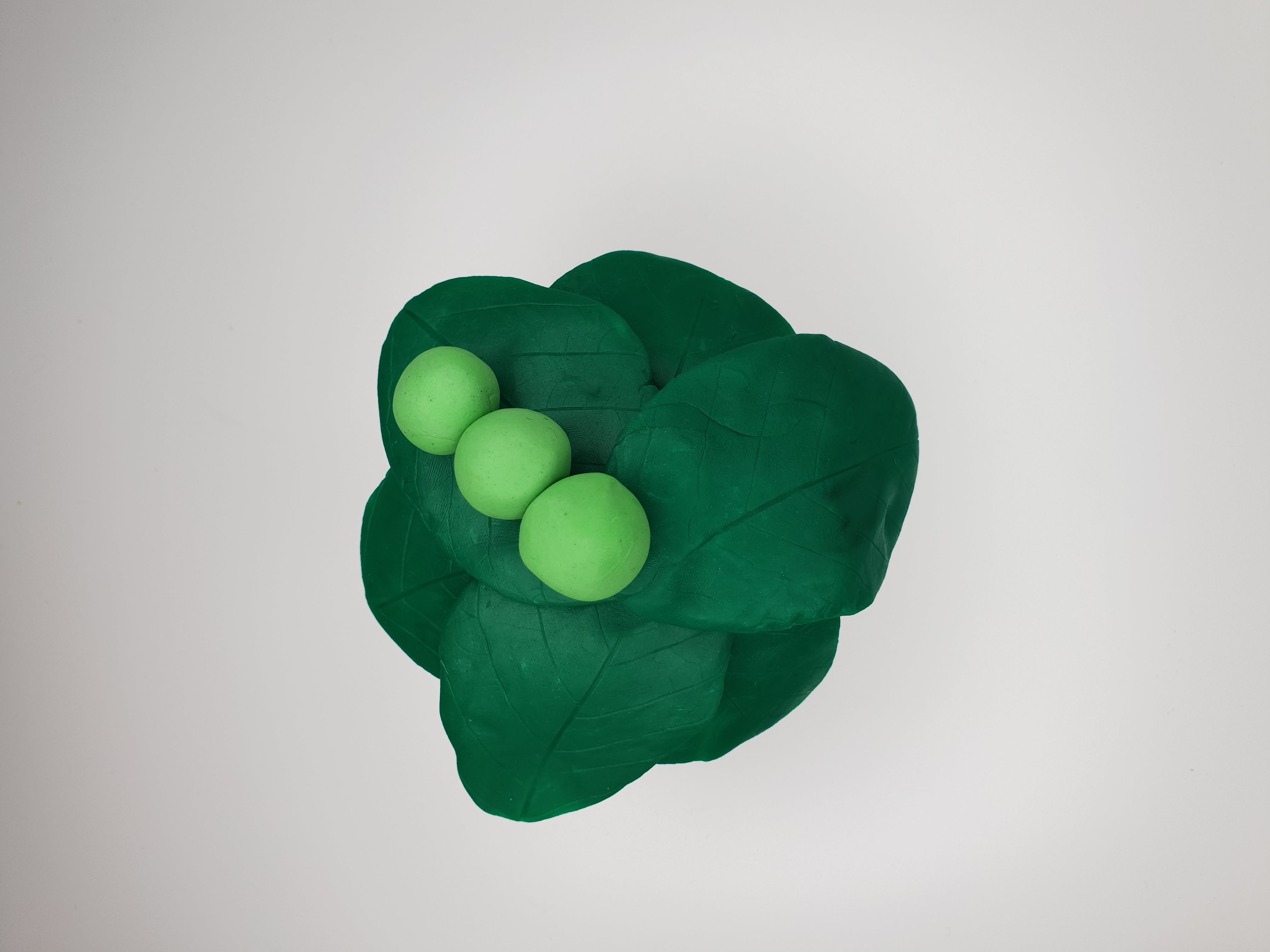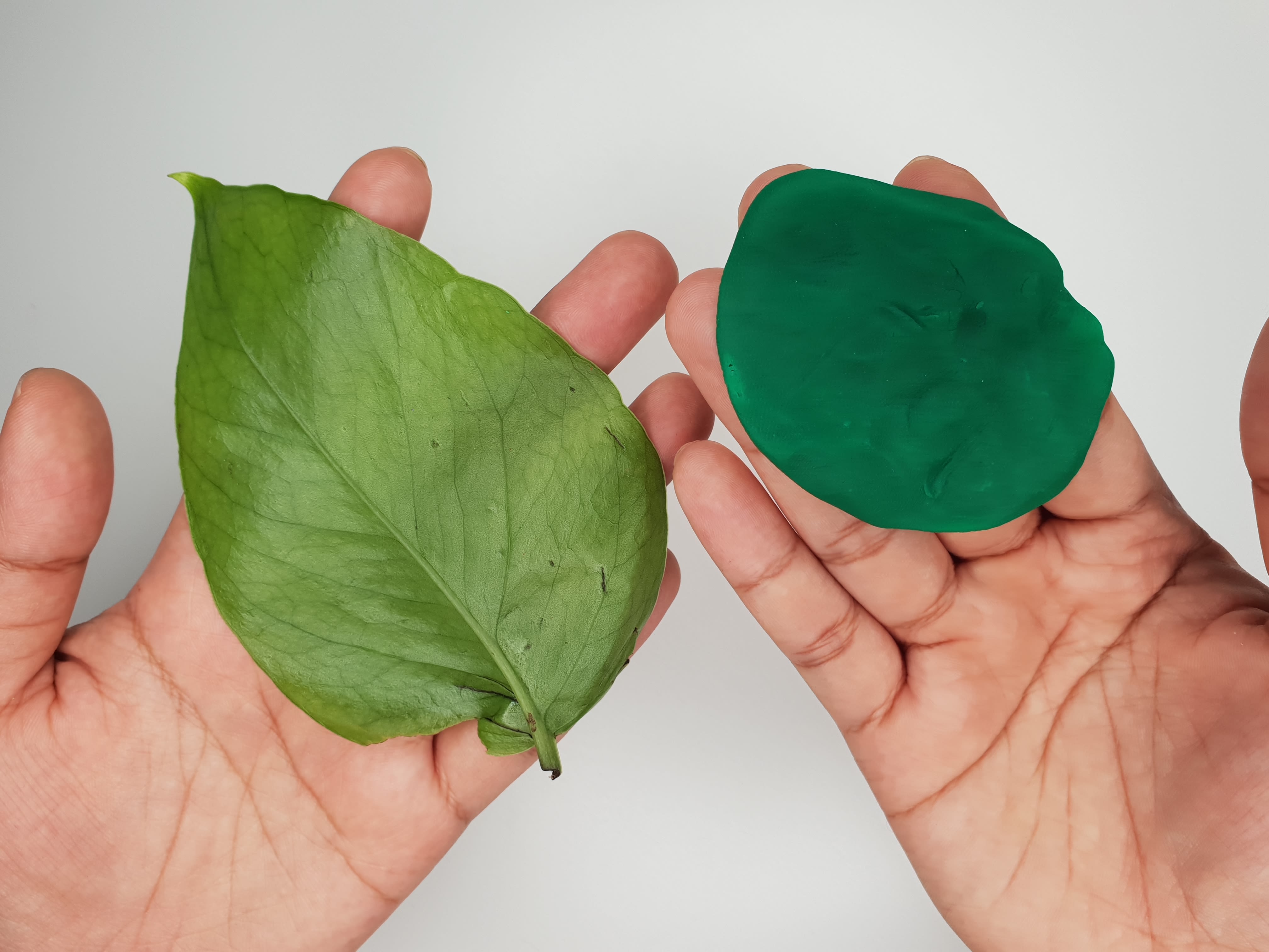 Roll out green conductive dough into ~2cm ball. Then flatten it into the shape of a leave