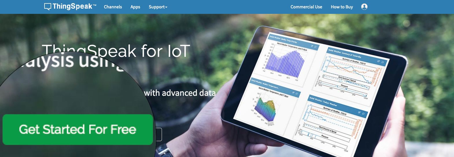 Go to https://thingspeak.com, and click Get Started for Free button. The sitewill walk you through the sign-up process, where you’ll be asked for your email and a password.