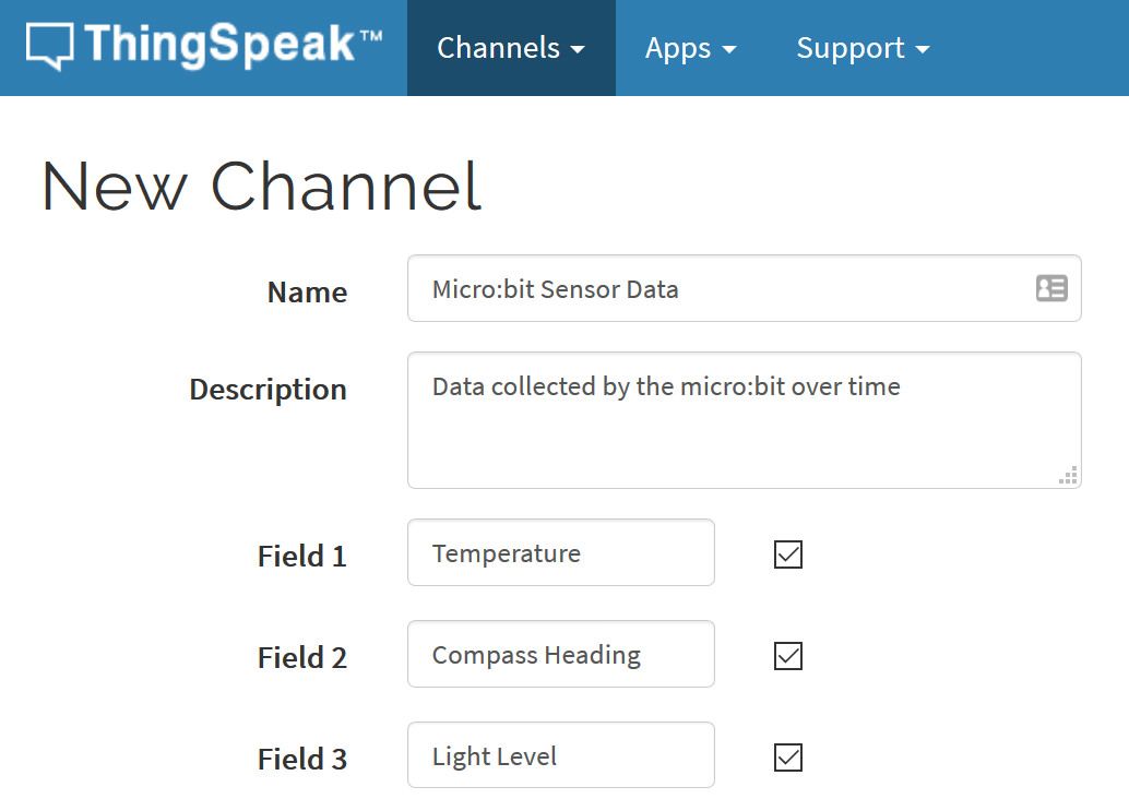 You’ll need to specify what data you want to store. Let’s start by creating three fields to store the temperature, compass heading, and light level detected by the micro:bit.